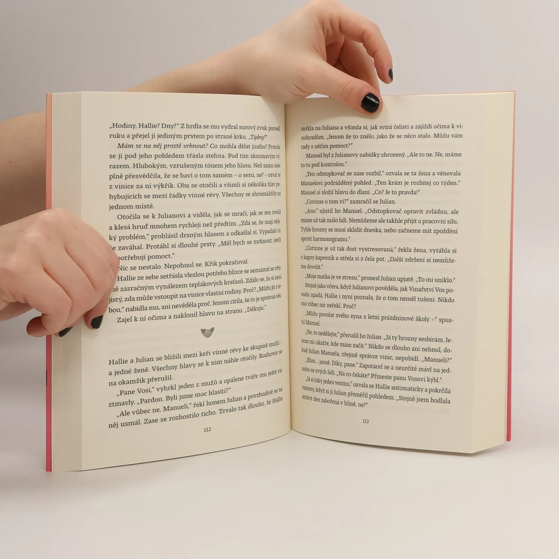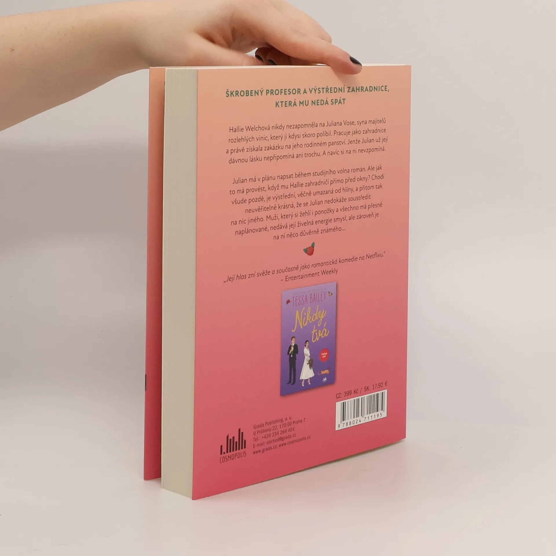 Hallie Welchová nikdy nezapomněla na Juliana Vose, syna majitelů rozlehlých vinic, který ji kdysi skoro políbil. Pracuje jako zahradnice a právě získala zakázku na jeho rodinném panství. Jenže Julian už její dávnou lásku nepřipomíná ani trochu. A navíc si na ni nevzpomíná. Julian má v plánu napsat během studijního volna román. Ale jak to má provést, když mu Hallie zahradničí přímo před okny? Chodí všude pozdě, je výstřední, věčně umazaná od hlíny, a přitom tak neuvěřitelně krásná, že se Julian nedokáže soustředit na nic jiného. Muži, který si žehlí i ponožky a všechno má přesně naplánované, nedává její živelná energie smysl, ale zároveň je na ní něco důvěrně známého…