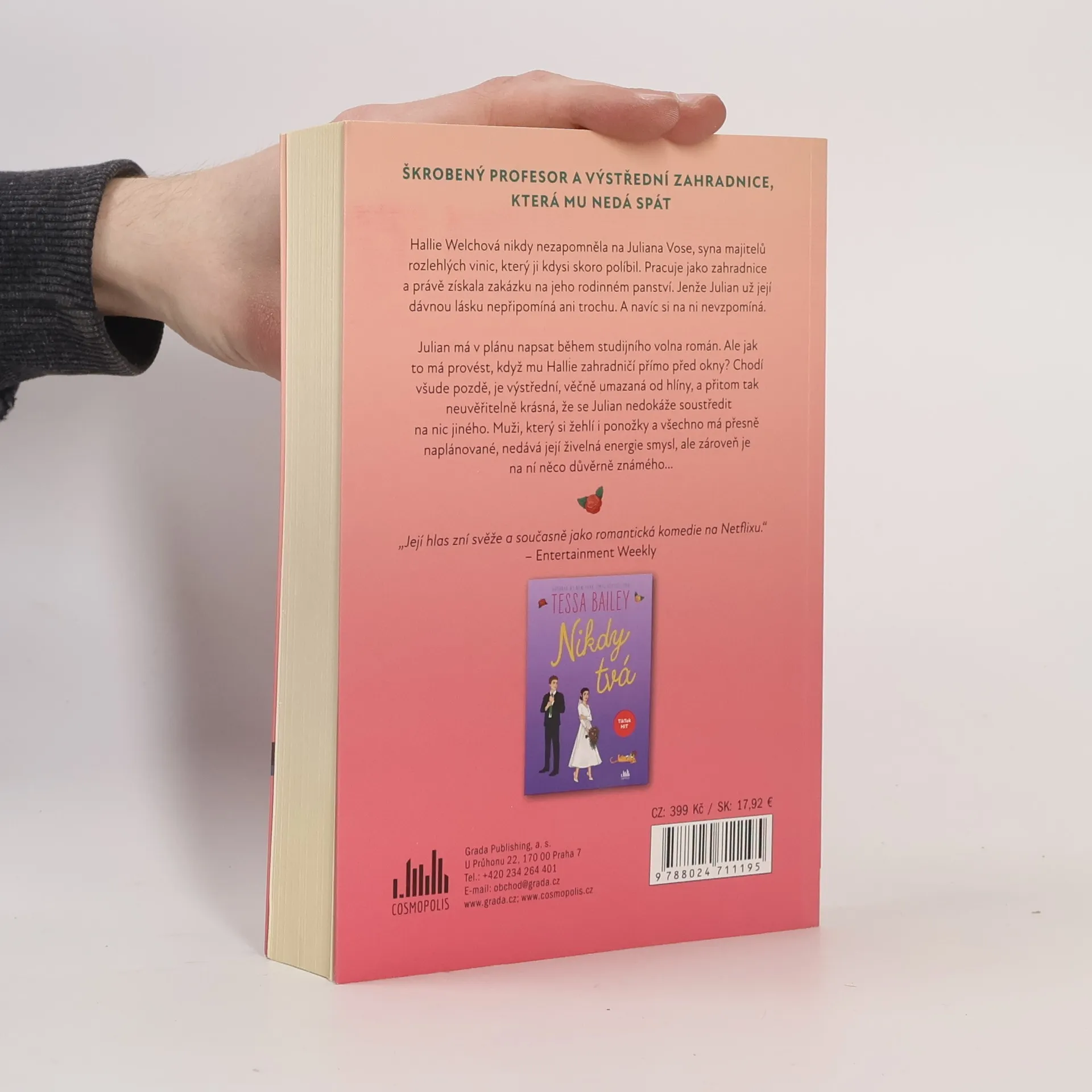 Hallie Welchová nikdy nezapomněla na Juliana Vose, syna majitelů rozlehlých vinic, který ji kdysi skoro políbil. Pracuje jako zahradnice a právě získala zakázku na jeho rodinném panství. Jenže Julian už její dávnou lásku nepřipomíná ani trochu. A navíc si na ni nevzpomíná. Julian má v plánu napsat během studijního volna román. Ale jak to má provést, když mu Hallie zahradničí přímo před okny? Chodí všude pozdě, je výstřední, věčně umazaná od hlíny, a přitom tak neuvěřitelně krásná, že se Julian nedokáže soustředit na nic jiného. Muži, který si žehlí i ponožky a všechno má přesně naplánované, nedává její živelná energie smysl, ale zároveň je na ní něco důvěrně známého…