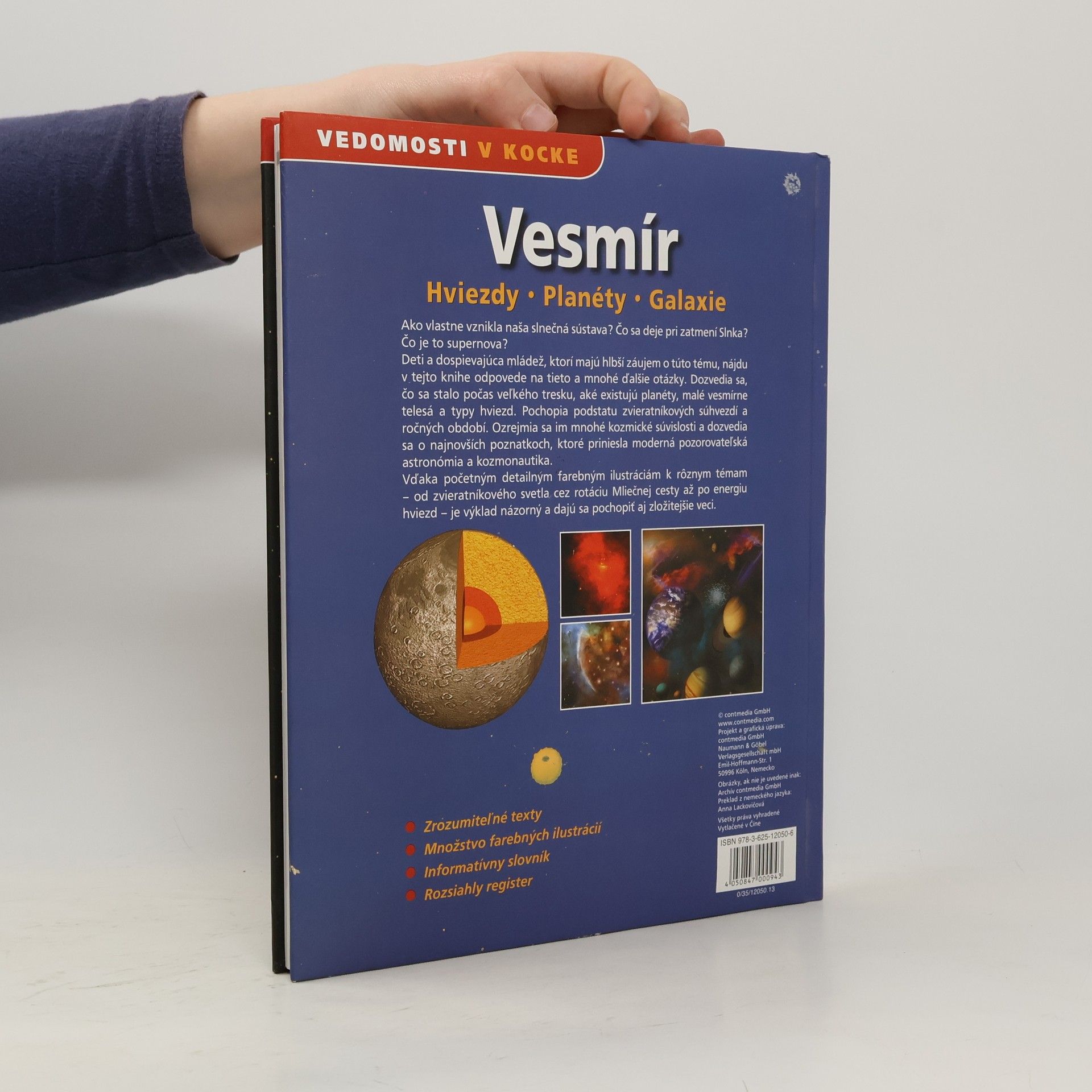 Odkud se vlastně vzala naše sluneční soustava? Co se děje při zatmění Slunce? Co je to supernova? Zrozumiteľné texty, množstvo farebných ilustrácí, informačný slovník, rozsiahly register.