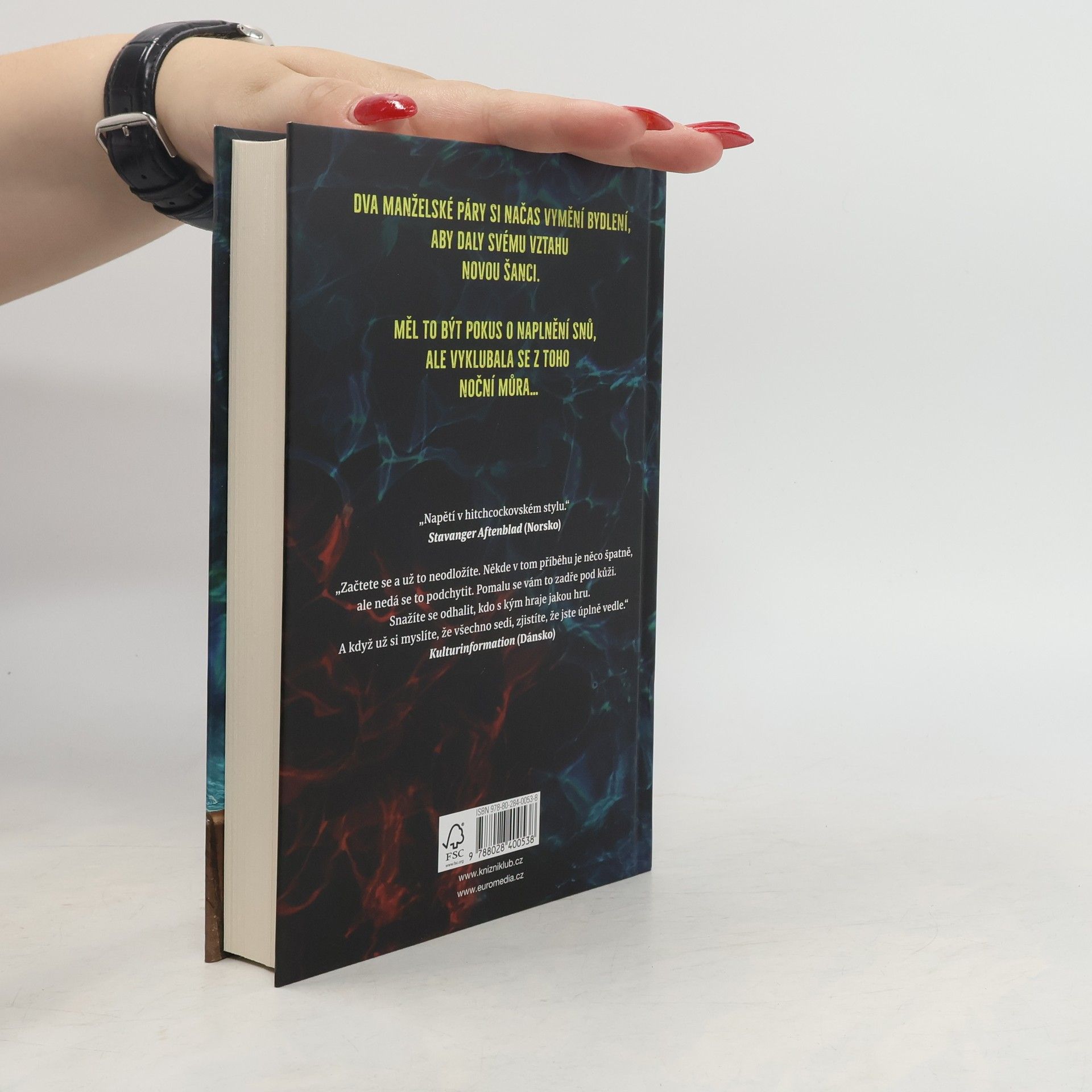 Zbrusu nový psychothriller od autora bestsellerové krimi série s Fabianem Riskem. Drásavý příběh o tom, jak vás mohou lži a vášně připravit o vaše sny. A pak i o život… Carl a Helene odjíždějí na dovolenou, aby se pokusili oživit vztah. Najdou si dům v Kalifornii a vymění si bydlení se Scarlett a Adamem, párem, který má strávit léto v jejich stockholmské vile. Ale jakmile dorazí do Santa Cruz, zjistí Carl, že tu spousta věcí nehraje. Opravdu dům vypadal takhle na fotkách? A co dělají ti druzí dva u nich doma? Naštěstí tam má Carl nainstalované bezpečnostní kamery. Na záznamu jedné z nich ale zahlédne, jak je Adam vypíná…