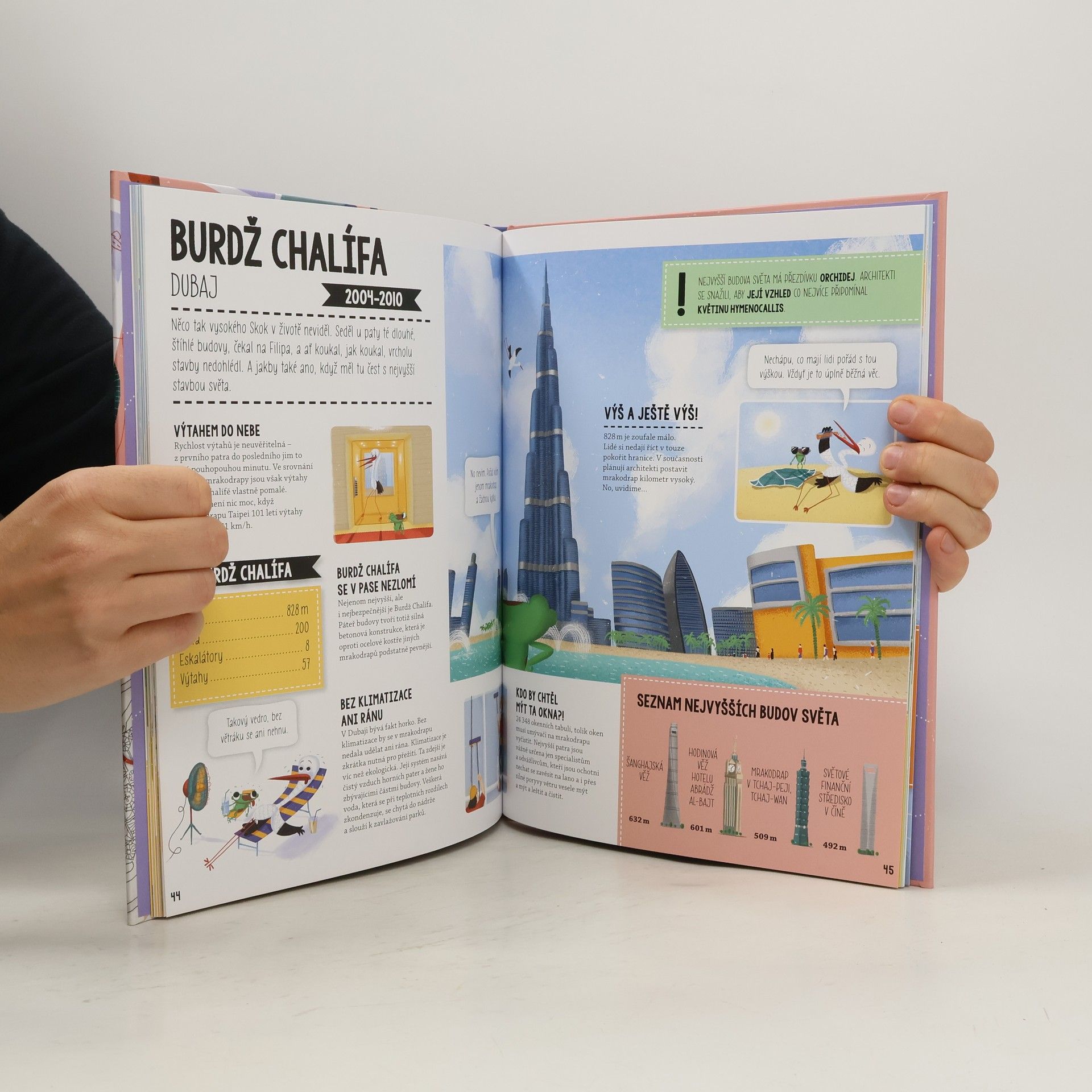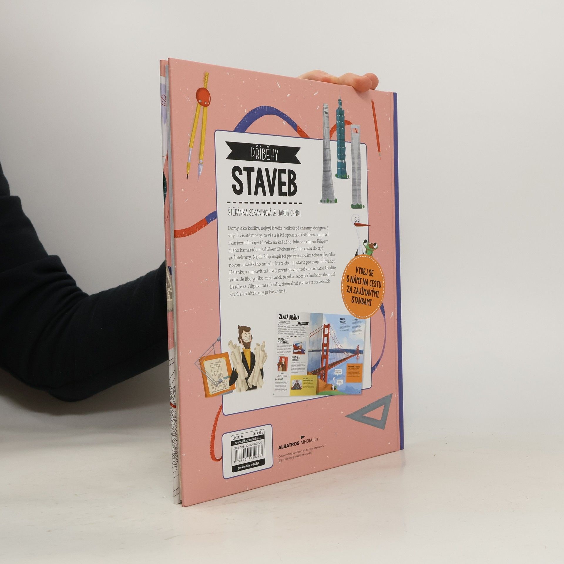 Prolétněte architekturou skrz naskrz! Domy jako košíky, nejvyšší věže, velkolepé chrámy, designové vily či visuté mosty, to vše a ještě spousta dalších významných i kuriozních objektů čeká na každého, kdo se s čápem Filipem a jeho kamarádem žabákem Skokem vydá na cestu do tajů architektury. Přidáte se k nim? Dobrodružství mezi stavebními styly právě začíná.