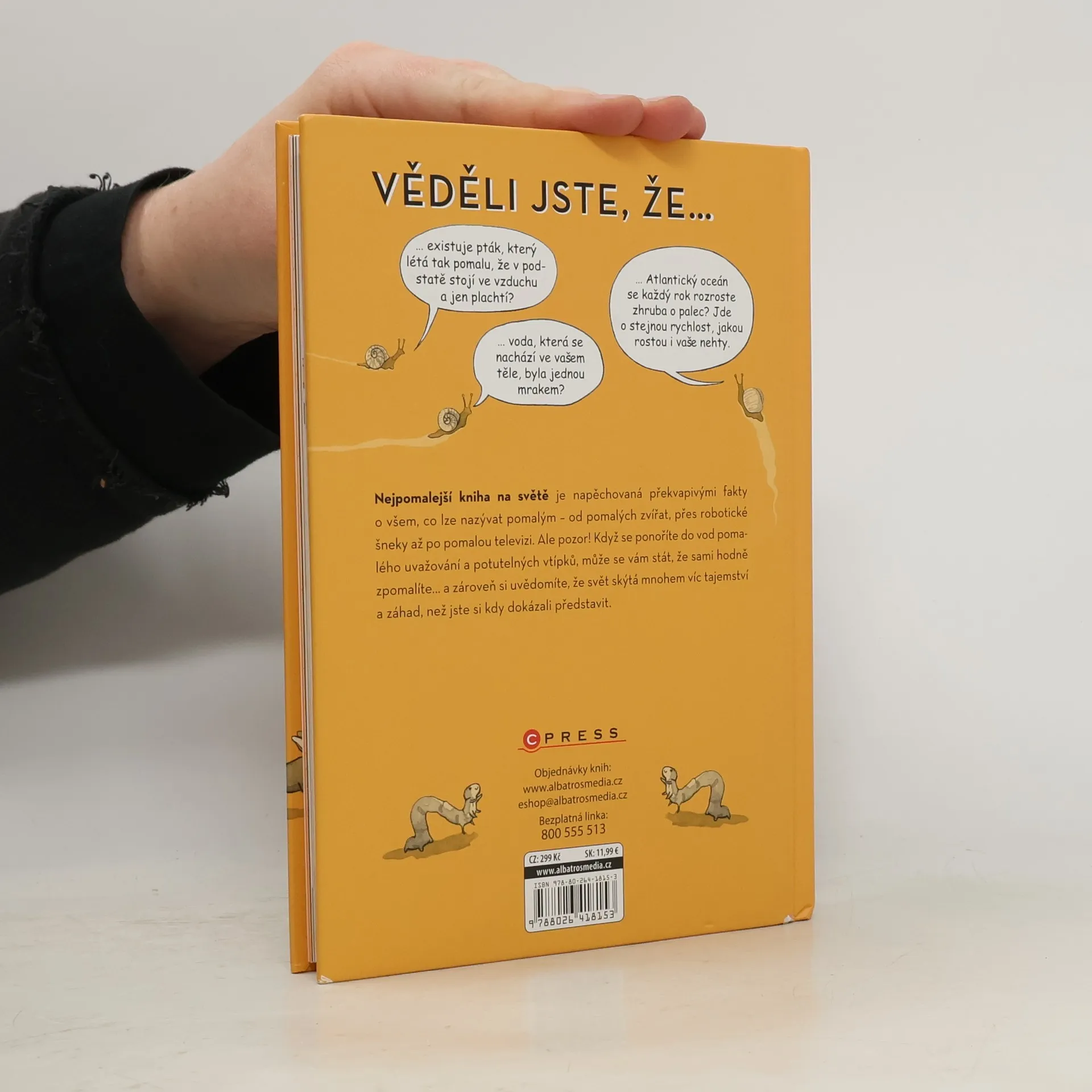Nejpomalejší kniha na světě je napěchovaná překvapivými fakty o všem, co lze nazývat pomalým – od pomalých zvířat, přes robotické šneky až po pomalou televizi. Ale pozor! Když se ponoříte do vod pomalého uvažování a potutelných vtípků, může se vám stát, že sami hodně zpomalíte… a zároveň si uvědomíte, že svět skýtá mnohem víc tajemství a záhad, než jste si kdy dokázali představit.