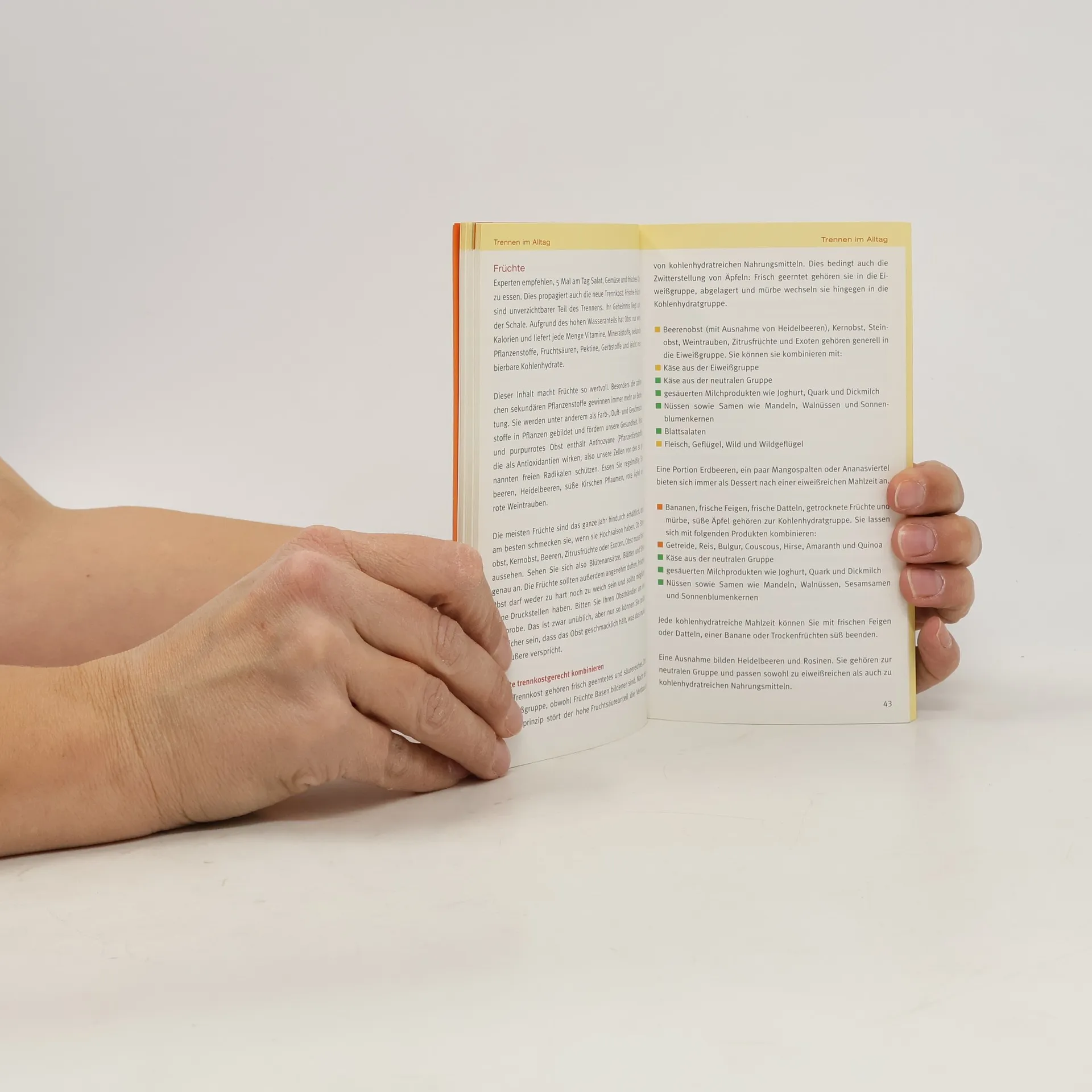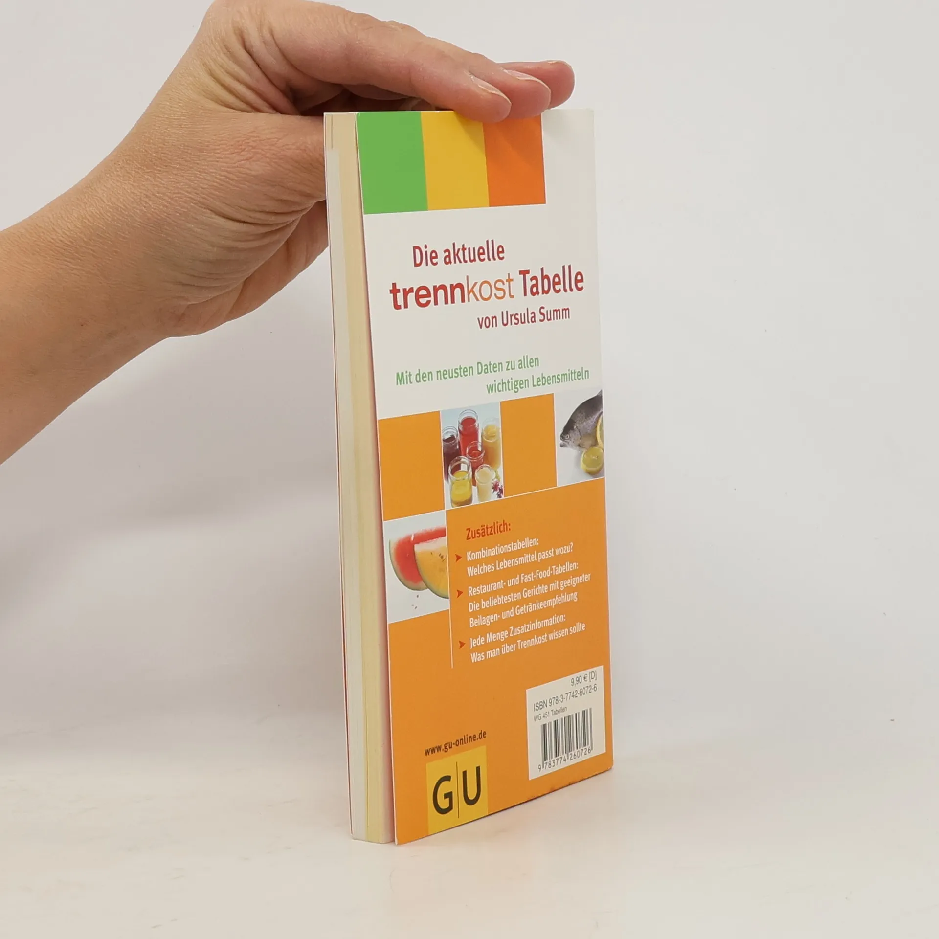 Mit ihrer neuen GU-Trennkost-Reihe stellt Erfolgsautorin Ursula Summ ihre erweiterte Trennkost vor. Die neue Trennkost-Tabelle bietet einen Überblick über die wichtigsten Lebensmittel auf aktuellstem Stand. Klar und übersichtlich durch die etablierten GU-Summ-Trennkost-Farben bietet die Tabelle eine schnelle Orientierung zu Hause, im Supermarkt und Unterwegs: Unterteilt nach einzelnen Lebensmittelgruppen, mit Angabe der Kalorien und Gruppenzugehörigkeit, mit Kombinationstabelle und Extra-Tabelle für typische Restaurant- und Fast-Food-Gerichte. In Verbindung mit dem Einführungstext und der Vorstellung eines idealen Trennkosttages finden so auch Trennkostanfänger die nötige Hilfe und einen leichten Einstieg.