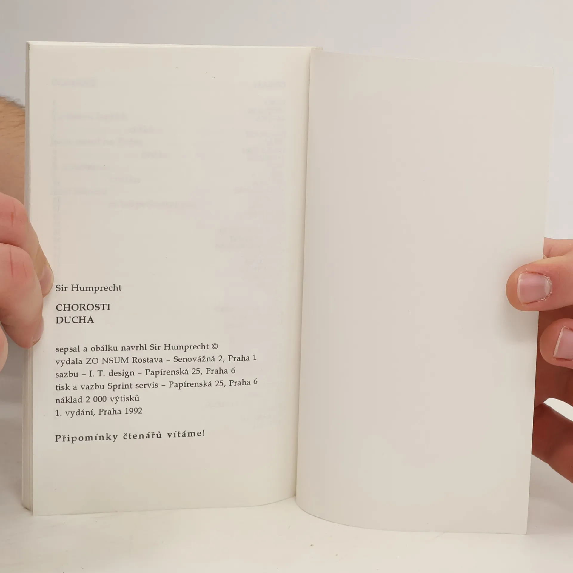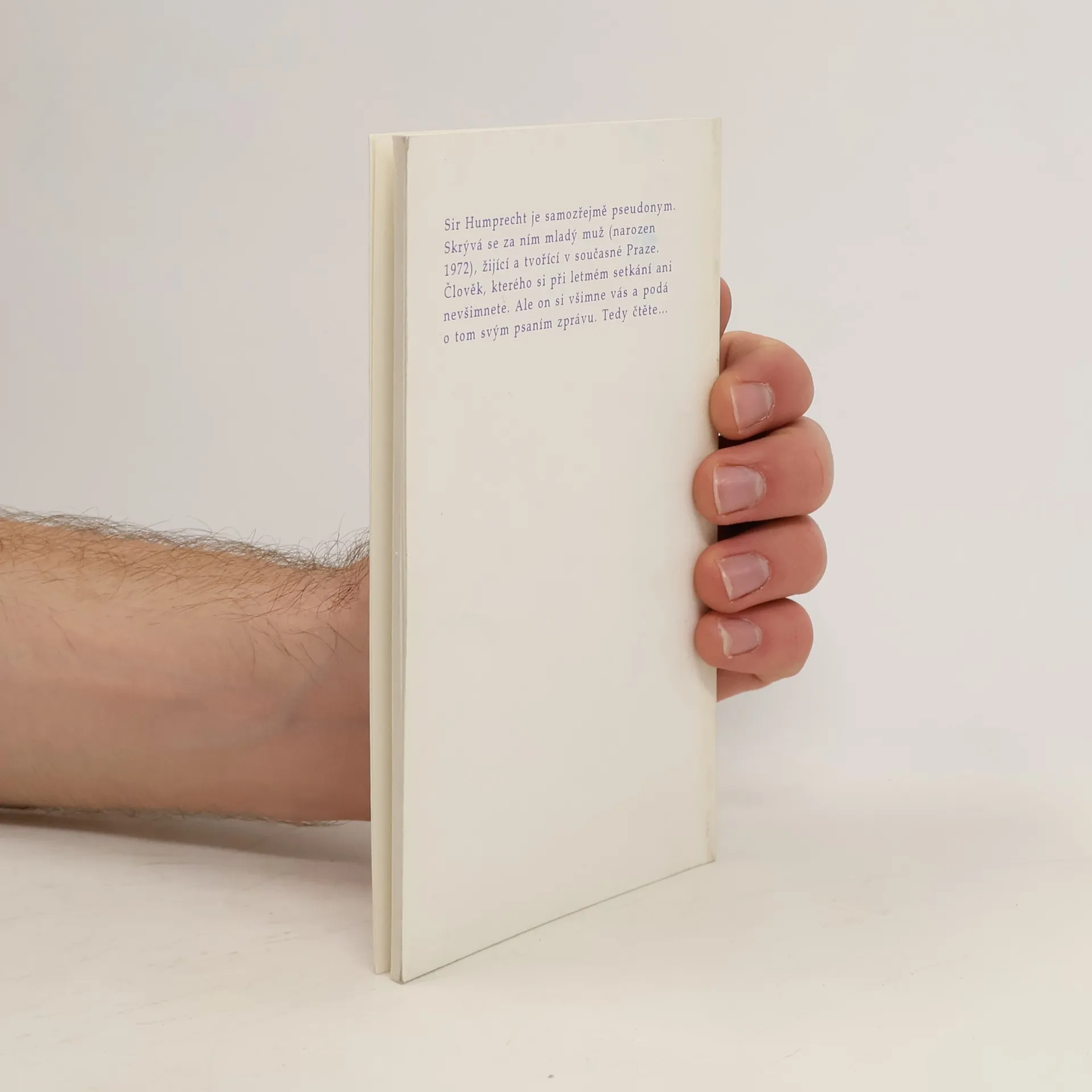 Sir Humprecht je samozřejmě pseudonym. Skrývá se za ním mladý muž (narozen 1972), žijící a tvořící v současné Praze. Člověk, kterého si při letmém setkání ani nevšimnete. Ale on si všimne vás a podá o tom svým psaním zprávu. Tedy čtěte...