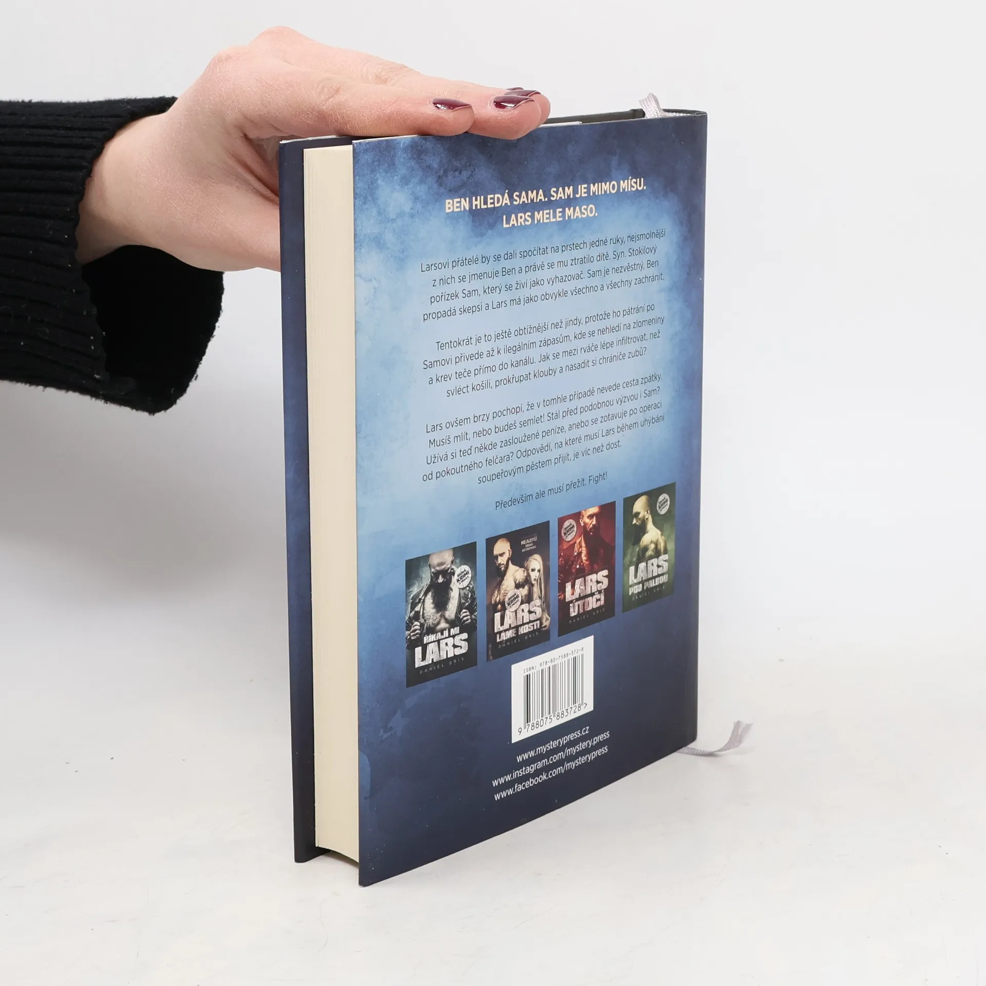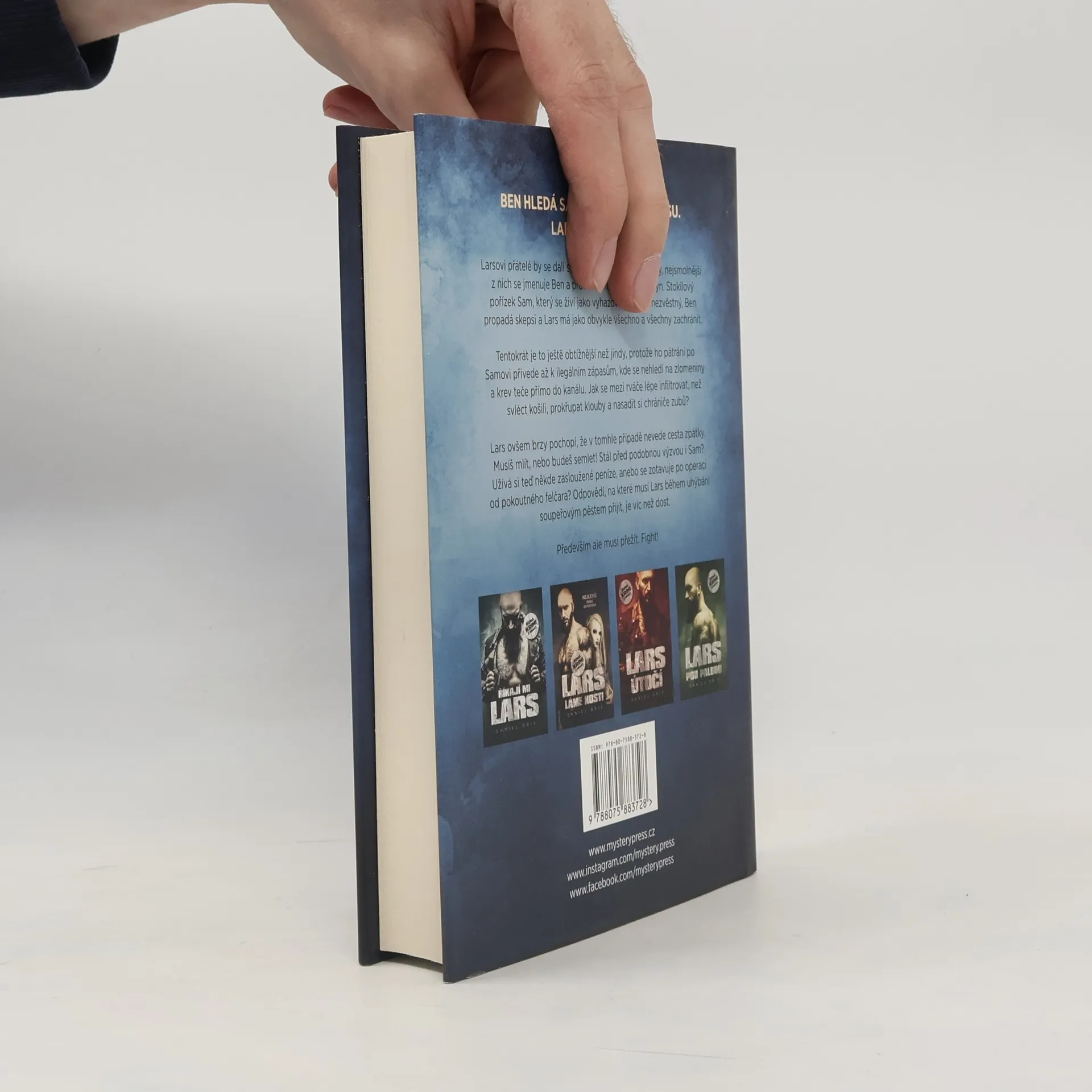 BEN HLEDÁ SAMA. SAM JE MIMO MÍSU. LARS MELE MASO.Larsovi přátelé by se dali spočítat na prstech jedné ruky, nejsmolnější z nich se jmenuje Ben a právě se mu ztratilo dítě. Syn. Stokilový pořízek Sam, který se živí jako vyhazovač. Sam je nezvěstný, Ben propadá skepsi a Lars má jako obvykle všechno a všechny zachránit. Tentokrát je to ještě obtížnější než jindy, protože ho pátrání po Samovi přivede až k ilegálním zápasům, kde se nehledí na zlomeniny a krev teče přímo do kanálu. Jak se mezi rváče lépe infiltrovat, než svléct košili, prokřupat klouby a nasadit si chrániče zubů? Lars ovšem brzy pochopí, že v tomhle případě nevede cesta zpátky. Musíš mlít, nebo budeš semlet! Stál před podobnou výzvou i Sam? Užívá si teď někde zasloužené peníze, anebo se zotavuje po operaci od pokoutného felčara? Odpovědí, na které musí Lars během uhýbání soupeřovým pěstem přijít, je víc než dost.Především ale musí přežít. Fight!
