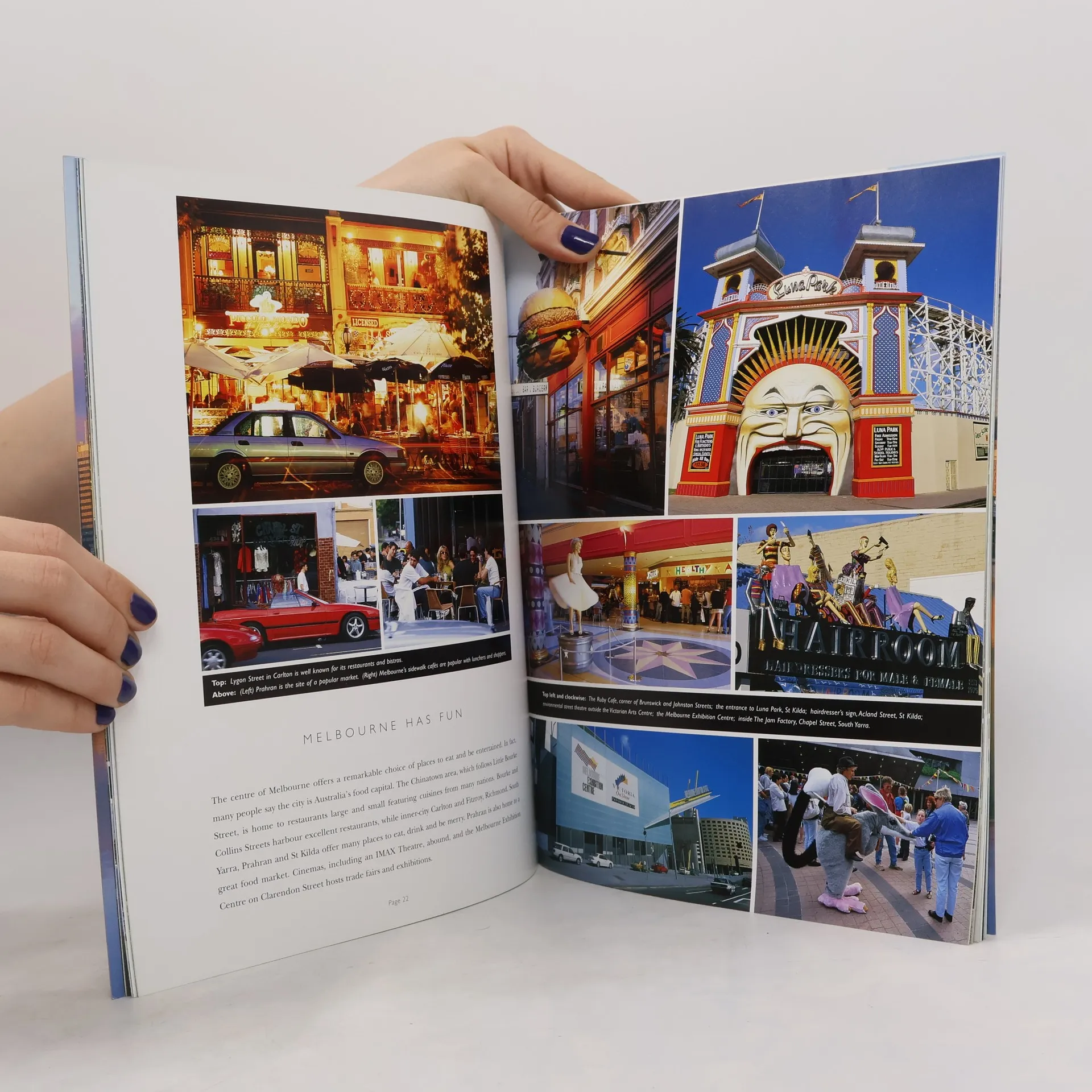 Illustrated tourists' guide to Melbourne. Full-colour photographs are accompanied by information about various aspects of the region, including the arts, sport, Phillip Island, Healesville Sanctuary, historical legacies, shopping, nightlife and the city. Includes map. Photographer/publisher produces books, postcards, and musical CDs and cassettes with an Australian theme.