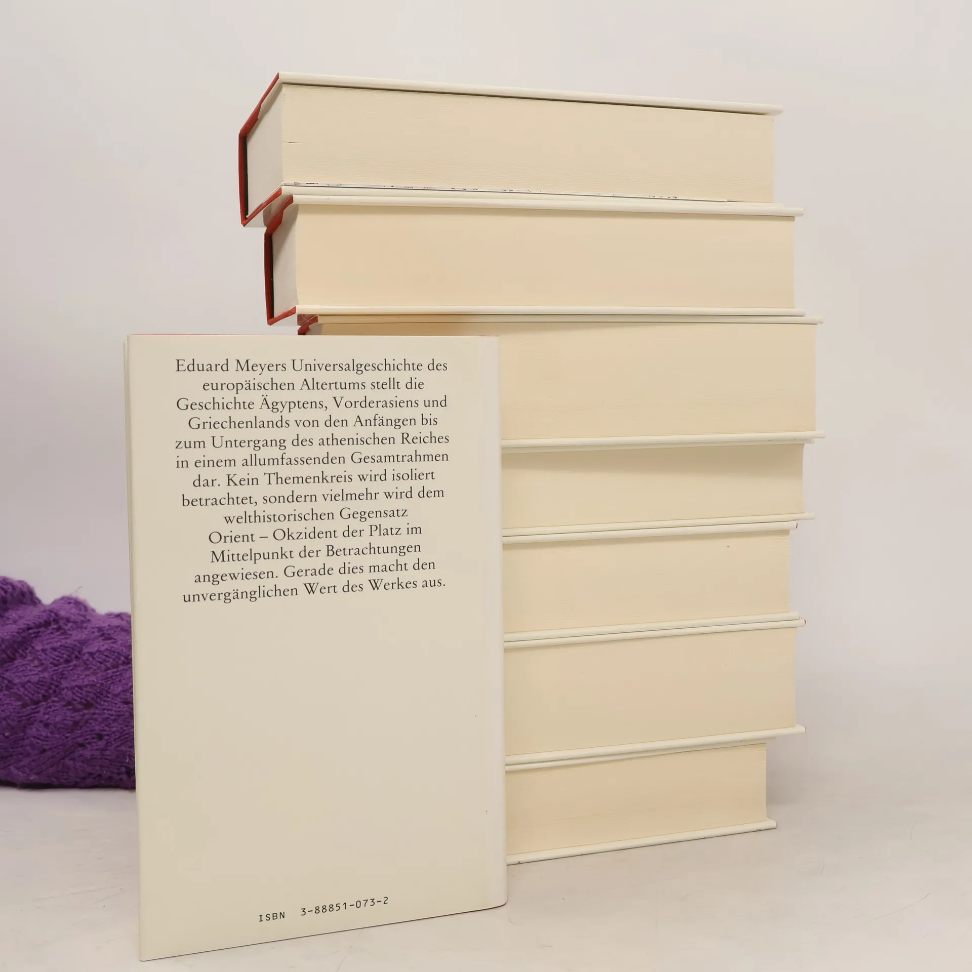 Eduard Meyers Universalgeschichte des europäischen Altertums stellt die Geschichte Ägyptens, Vorderasiens und Griechenlands von den Anfängen bis zum Untergang des athenischen Reiches in einem allumfassenden Gesamtrahmen dar. Kein Themenkreis wird isoliert betrachtet, sondern vielmehr wird dem welthistorischen Gegensatz Orient - Okzident der Platz im Mittelpunkt der Betrachtungen angewiesen. Gerade dies macht den unvergänglichen Wert des Werkes aus.