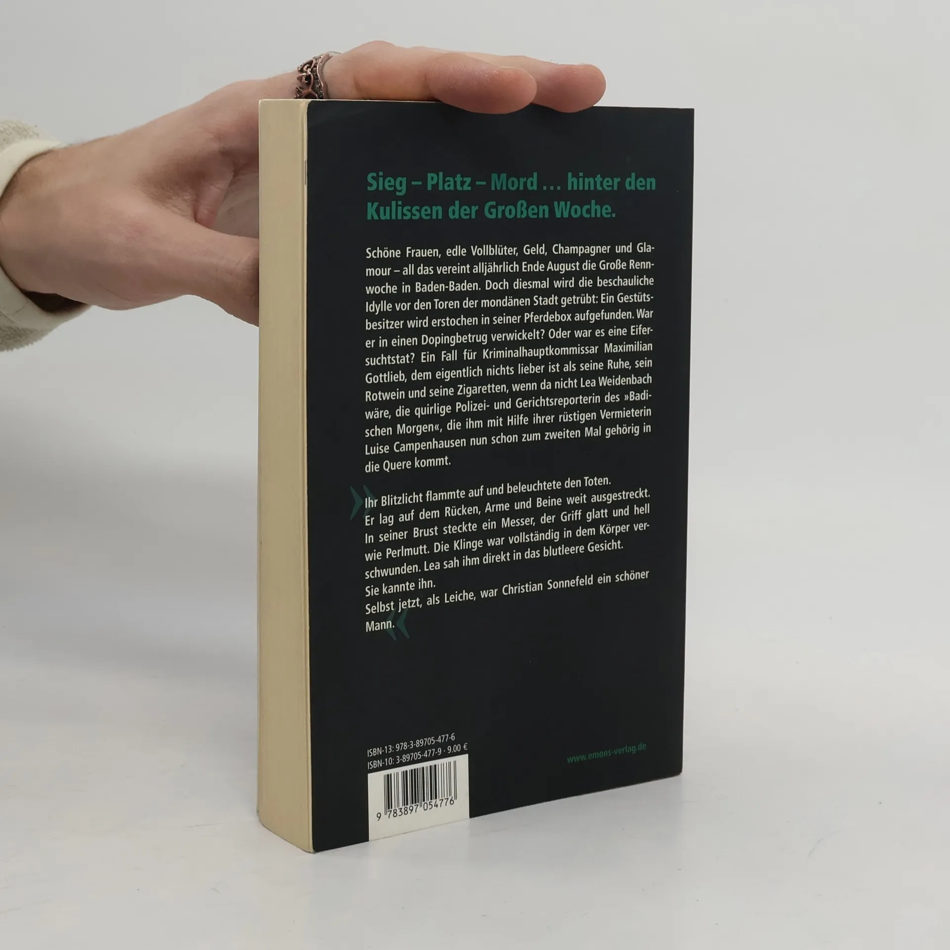 In der Großen Rennwoche in Baden-Baden wird ein Gestütsbesitzer ermordet in seiner Pferdebox gefunden. Kriminalhauptkommissar Maximilian Gottlieb, der Ruhe schätzt, muss sich mit der lebhaften Reporterin Lea Weidenbach und ihrer Vermieterin Luise Campenhausen auseinandersetzen, um den Fall zu lösen.