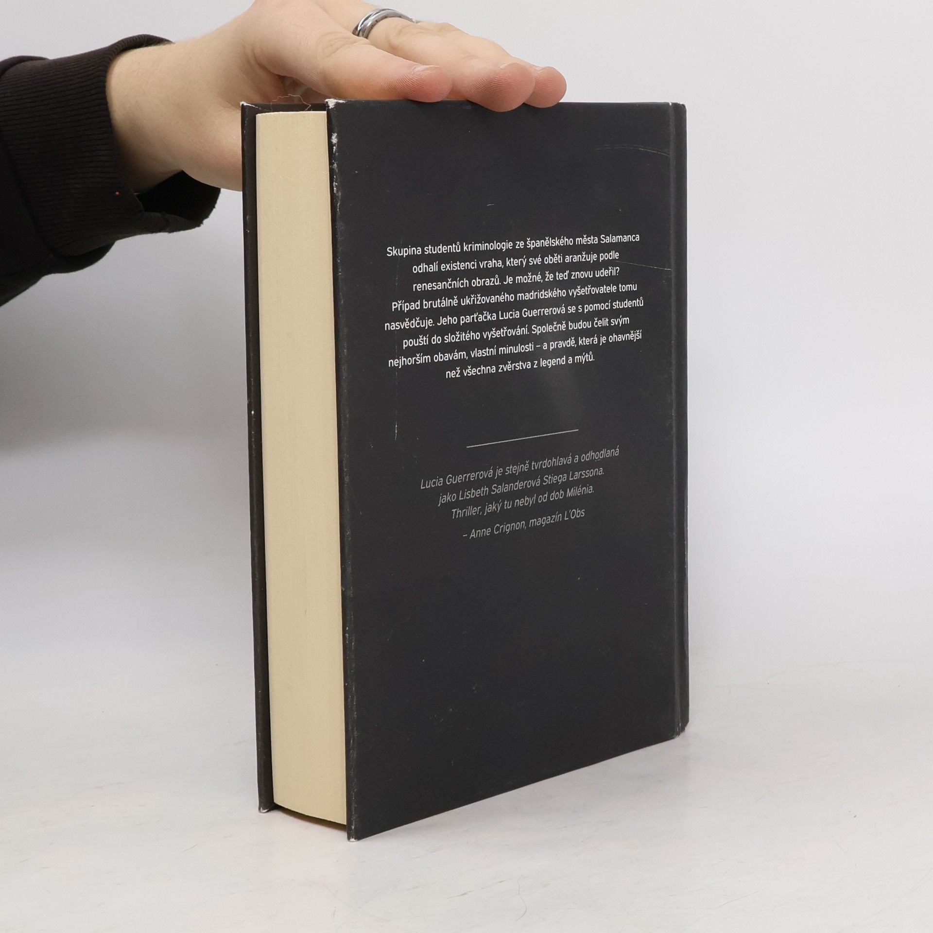 Zlo se nezastaví před ničím. Proto ho musí zastavit ona. Skupina studentů kriminologie ze španělského města Salamanca odhalí existenci vraha, který své oběti aranžuje podle renesančních obrazů. Je možné, že teď znovu udeřil? Případ brutálně ukřižovaného madridského vyšetřovatele tomu nasvědčuje. Jeho parťačka Lucia Guerrero se s pomocí studentů pouští do složitého vyšetřování. Společně budou čelit svým nejhorším obávám, vlastní minulosti – a pravdě, která je ohavnější než všechna zvěrstva z legend a mýtů.Skupina studentů kriminologie na univerzitě v Salamance odhalí existenci vraha, který už několik desetiletí uniká spravedlnosti a aranžuje své oběti podle renesančních obrazů.Vyšetřovatelka Lucia Guerrero najde v Madridu svého parťáka ukřižovaného na Kalvárii a vydá se po stopě jeho vraha.Všichni jsou konfrontováni se svou vlastní minulostí, se svými nejhlubšími hrůzami a s pravdou ohavnější než všechny legendy a mýty.