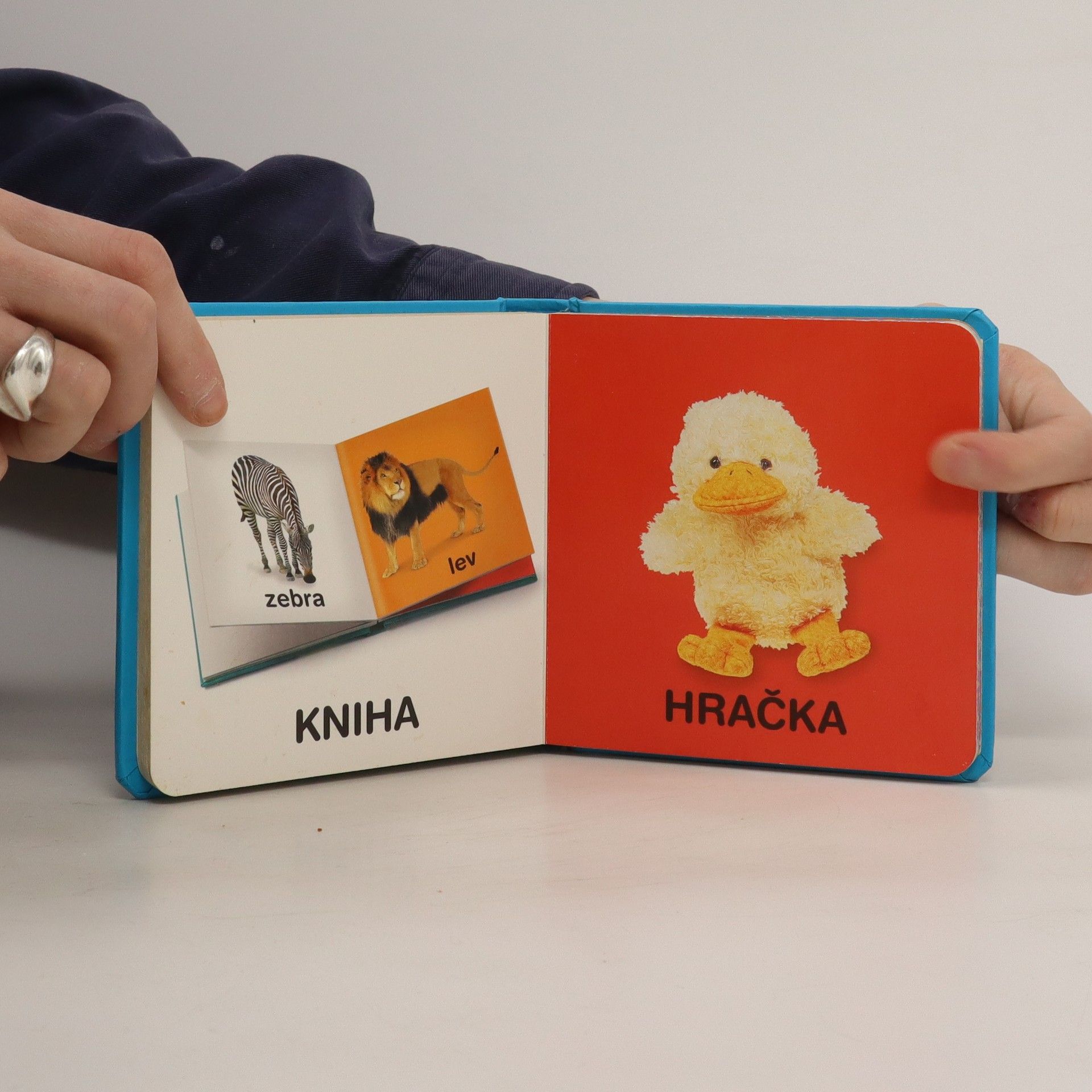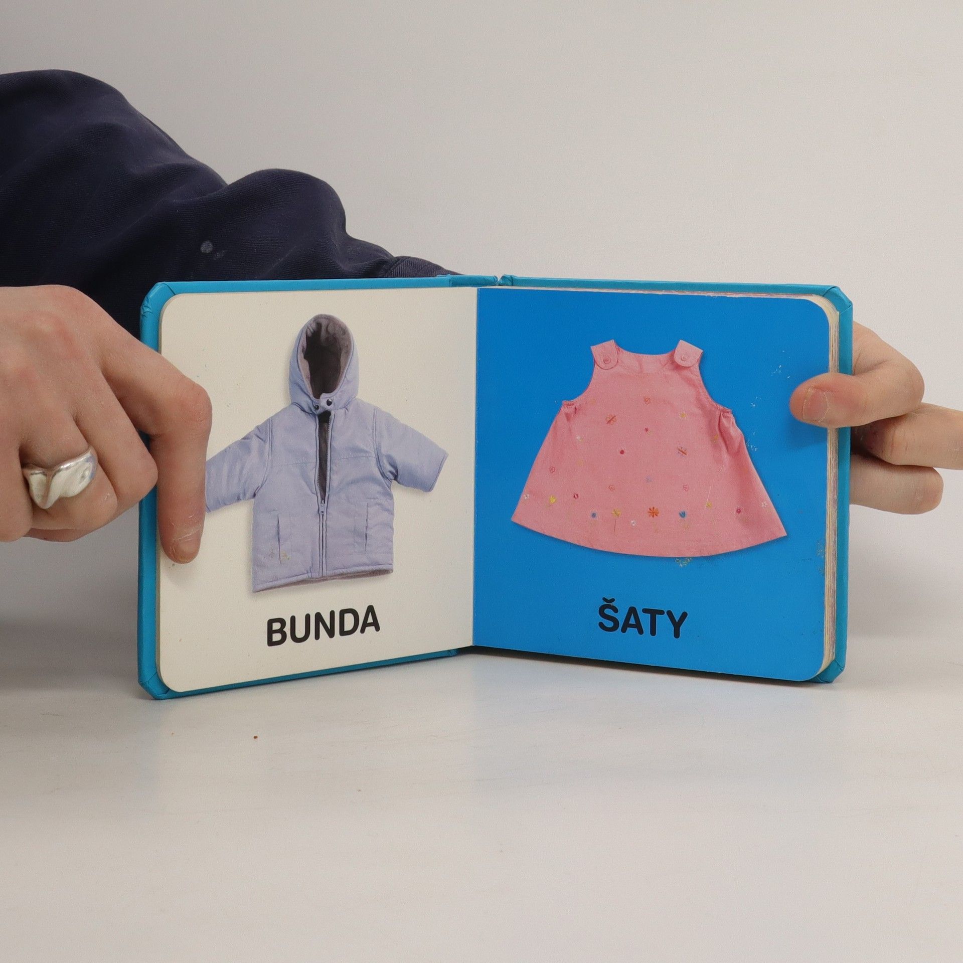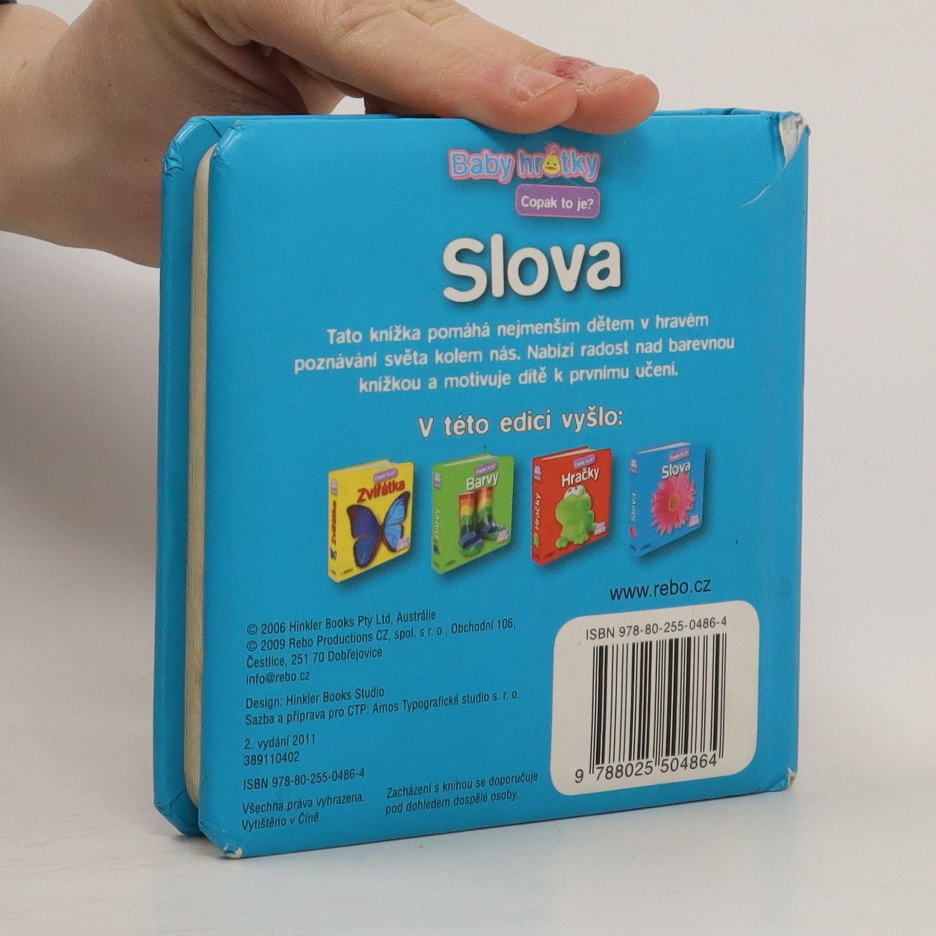 Knížka Slova pomáhá nejmenším dětem poznávat a pojmenovávat předměty, které je obklopují. Na každé stránce je jeden jednoduchý obrázek a jeho pojmenování.