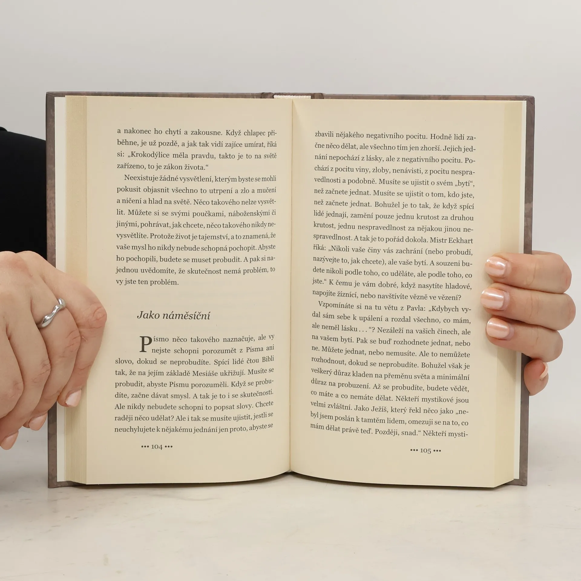Probouzet lidi a odhalovat jim pravdu o jejich vlastní velikosti – to je cíl, který si Anthony de Mello kladl při své práci s lidmi, a tedy i cíl této knihy, která jeho práci s lidmi zpětně zachycuje. Jeho schopnost odhalovat mylnost našich přesvědčení a scestnost našich sebeklamů a iluzí nám nemusí být vždy příjemná, ale přesto je to dar. Dar pravdy, která čistí a léčí naše rány, dar inspirace k novému životu, dar láskyplné pobídky k probuzení a k bdělosti. Druhé vydání.