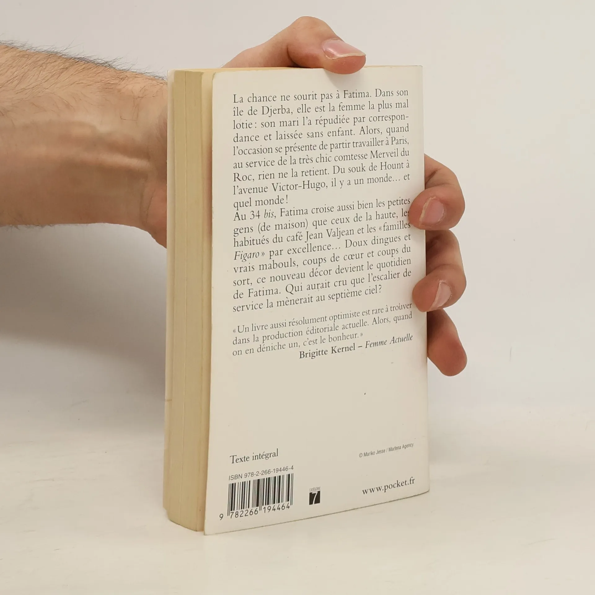 Entre Djerba et Paris, il y a un monde. Tunisienne répudiée par son mari, Fatima n'a qu'une idée en tête : le rejoindre aux Etats-Unis. Avec une énergie et une bonne humeur communicative, elle entre donc au service d'une vieille comtesse du XVIe arrondissement, autour de laquelle gravite une belle bande de doux dingues. On y trouve Hadley Hadley III, truculent écrivain en herbe, les Denis-Rabotin, famille Figaro par excellence, Hippolyte Suget, petit rat de l'Opéra devenu cambrioleur, Victorine, chaleureuse domestique sénégalaise... Les tribulations de Fatima se mêlent à celles de cette clique haute en couleurs, le temps, bien sûr, de pouvoir se payer la traversée de l'Atlantique. Mais les beaux quartiers lui réservent bien des surprises...