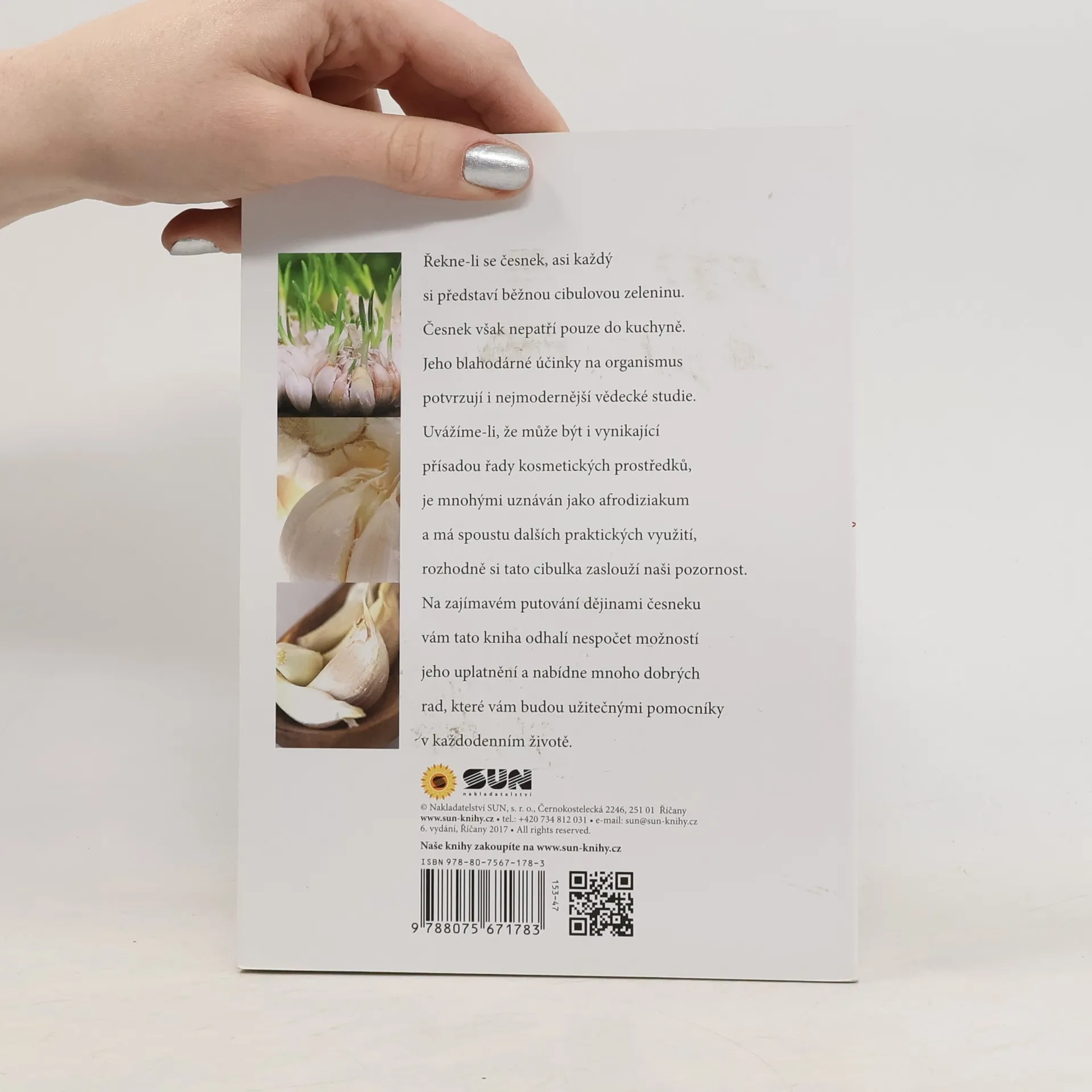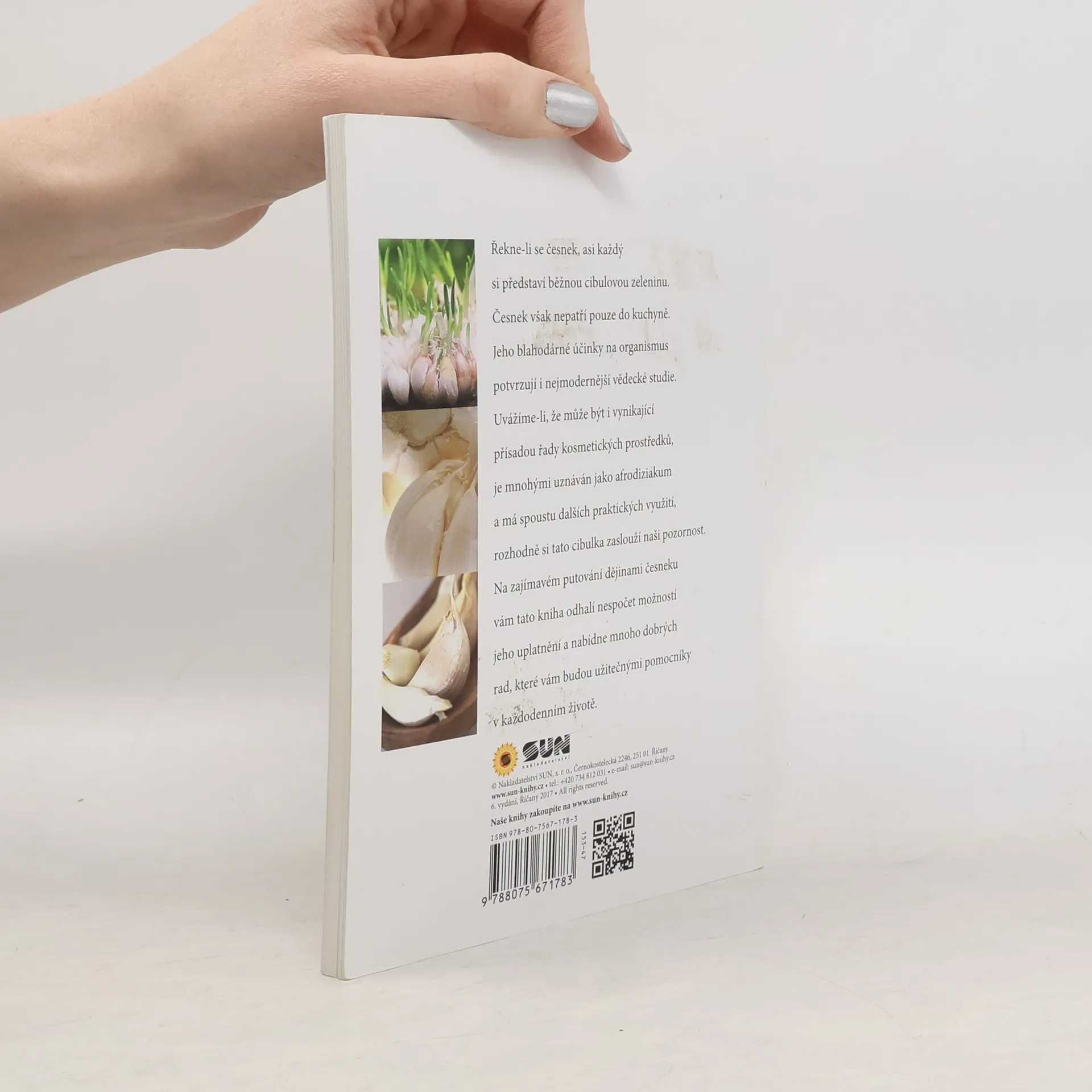 Řekne-li se česnek, asi každý si představí běžnou cibulovou zeleninu.Česnek však nepatří pouze do kuchyně. Jeho blahodárné účinky na organismus potvrzují i nejmodernější vědecké studie. Na zajímavém putování dějinami česneku vám tato kniha odhalí nespočet možností jeho uplatnění a nabídne mnoho dobrých rad, které vám budou užitečnými pomocníky v každodenním životě.