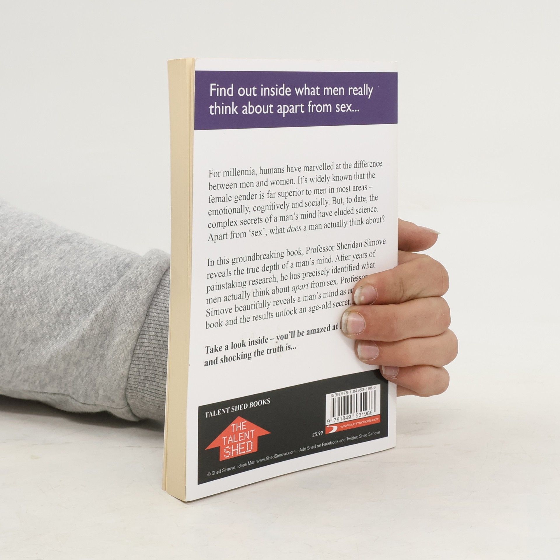 Find out what men really think about apart from sex... For millennia, humans have marvelled at the difference between men and women. It's widely known that the female gender is far superior to men in most areas - emotionally, cognitively and socially. But, to date, the complex secrets of a man's mind have eluded science. Apart from 'sex', what does a man actually think about? In this groundbreaking book, Professor Sheridan Simove reveals the true depth of a man's mind. After years of painstaking research, he has precisely identified what men actually think about apart from sex. Professor Simove beautifully reveals a man's mind as an open book and the results unlock an age old secret...