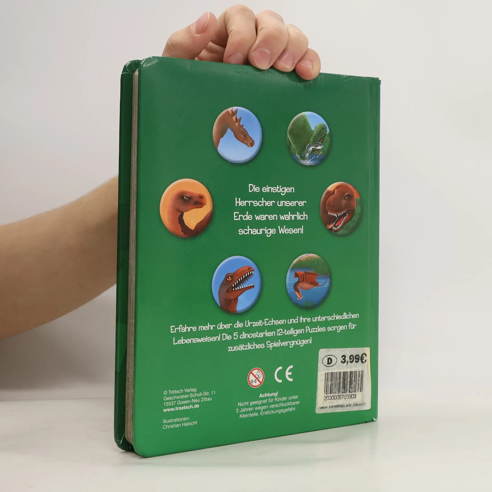 Dieses Puzzlebuch bietet viele Informationen über Dinosaurier, die farbenfroh dargestellt sind. Jede Doppelseite enthält informative Texte sowie ein 12-teiliges Puzzle mit Vorlage.