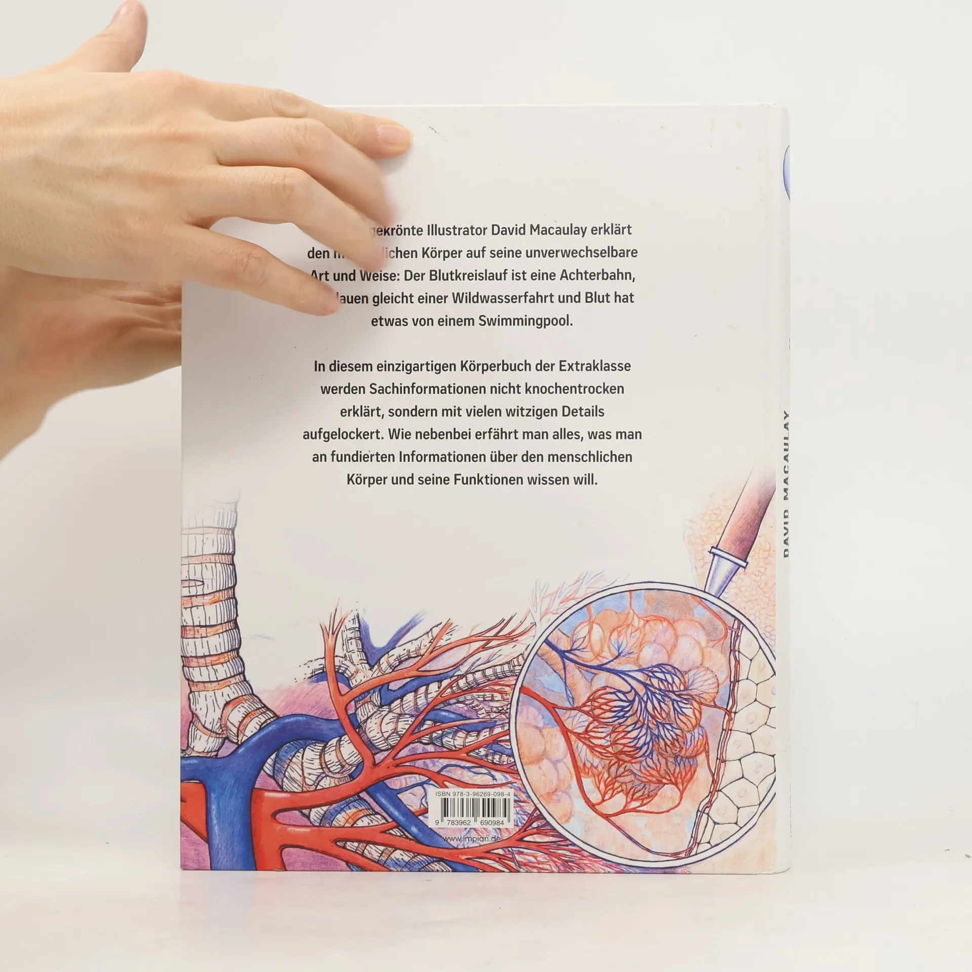 David Macaulay erklärt den menschlichen Körper auf humorvolle Weise: Der Blutkreislauf wird zur Achterbahn, das Verdauen zur Wildwasserfahrt. Dieses einzigartige Buch vermittelt fundierte Informationen über den Körper mit witzigen Details und macht Biologie verständlich und anschaulich.