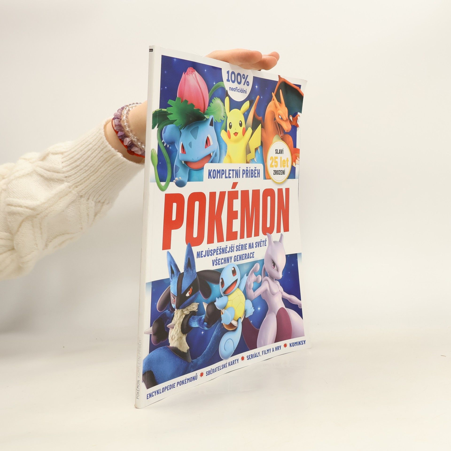 Speciální výroční Kompletní příběh Pokémon vás provede po dlouhé cestě od první generace pokémonů k zatím nejnovější osmé. Každá další éra přitom přinesla do hry nové prvky i hrdiny, přehledná encyklopedie pokémonů, takzvaný pokédex, vám proto názorně ukáže, jak se řady kapesních příšerek postupně rozrůstaly. Seznámíte se s okolnostmi vzniku původních videoher, nahlédnete do zákulisí televizního seriálu, získáte i mnoho dalších neocenitelných informací. Ať jste zkušený profesor pokémonů nebo vaše pouť do Indigové ligy teprve začíná, nepochybujeme, že se při tom dobře pobavíte. Vaše vlastní legenda o pokémonech právě začíná. Otevírá se před vámi svět snění a dobrodružství, stačí udělat první krok! Encyklopedie Pokémonů Prostudujte si kompletní pokédex – od Bulbasaura po Calyrexe Všechny generace Poznejte historii série, z oblasti Kanto až do posledního regionu Galar Sběratelská karetní hra Příběh strategické a neuvěřitelně zábavné sběratelské karetní hry Pokémon Film a anime Ponořte se do světa nezapomenutelného televizního seriálu a kultovních filmů