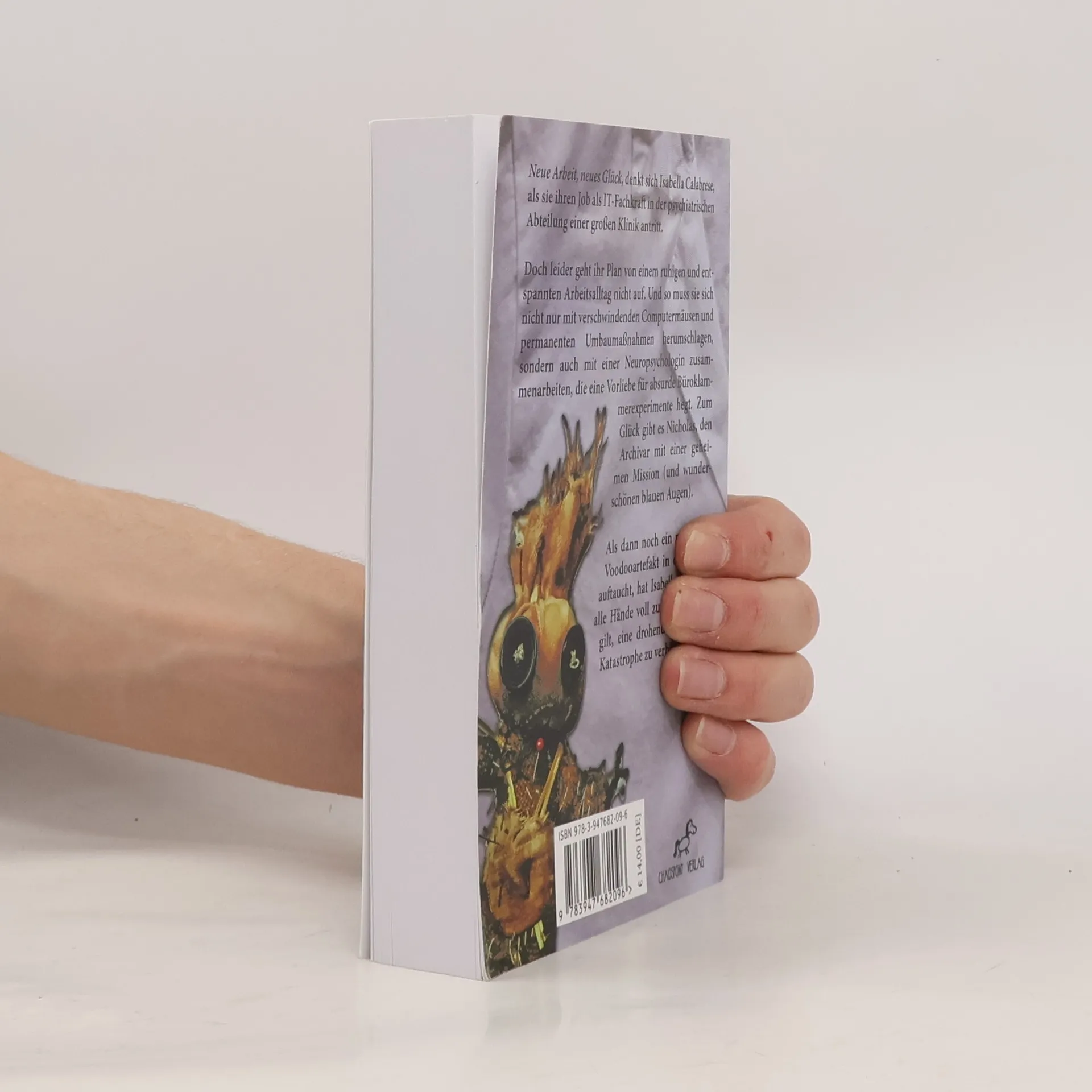 Isabella Calabrese startet optimistisch als IT-Fachkraft in einer psychiatrischen Klinik, doch ihr Arbeitsalltag wird chaotisch durch verschwundene Computer und eine exzentrische Neuropsychologin. Unterstützung findet sie bei Nicholas, während ein magisches Voodooartefakt eine kosmische Katastrophe droht. Ein absurd-heiterer Roman von Alisha Pilenko.
