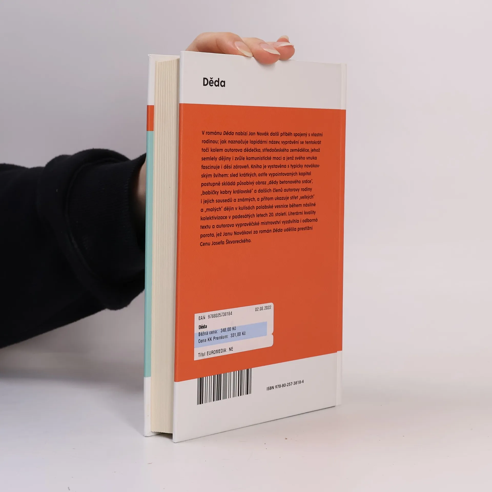 V románu Děda nabízí Jan Novák další příběh spojený s vlastní rodinou; jak naznačuje lapidární název, vyprávění se tentokrát točí kolem autorova dědečka, středočeského zemědělce, jehož semlely dějiny i zvůle komunistické moci a jenž svého vnuka fascinuje i děsí zároveň. Kniha je vystavěna s typicky novákovským švihem: sled krátkých, ostře vypointovaných kapitol postupně skládá působivý obraz „dědy betonového srdce“, „babičky kobry královské“ a dalších členů autorovy rodiny i jejich sousedů a známých, a přitom ukazuje střet „velkých“ a „malých“ dějin v kulisách polabské vesnice během násilné kolektivizace v padesátých letech minulého století.