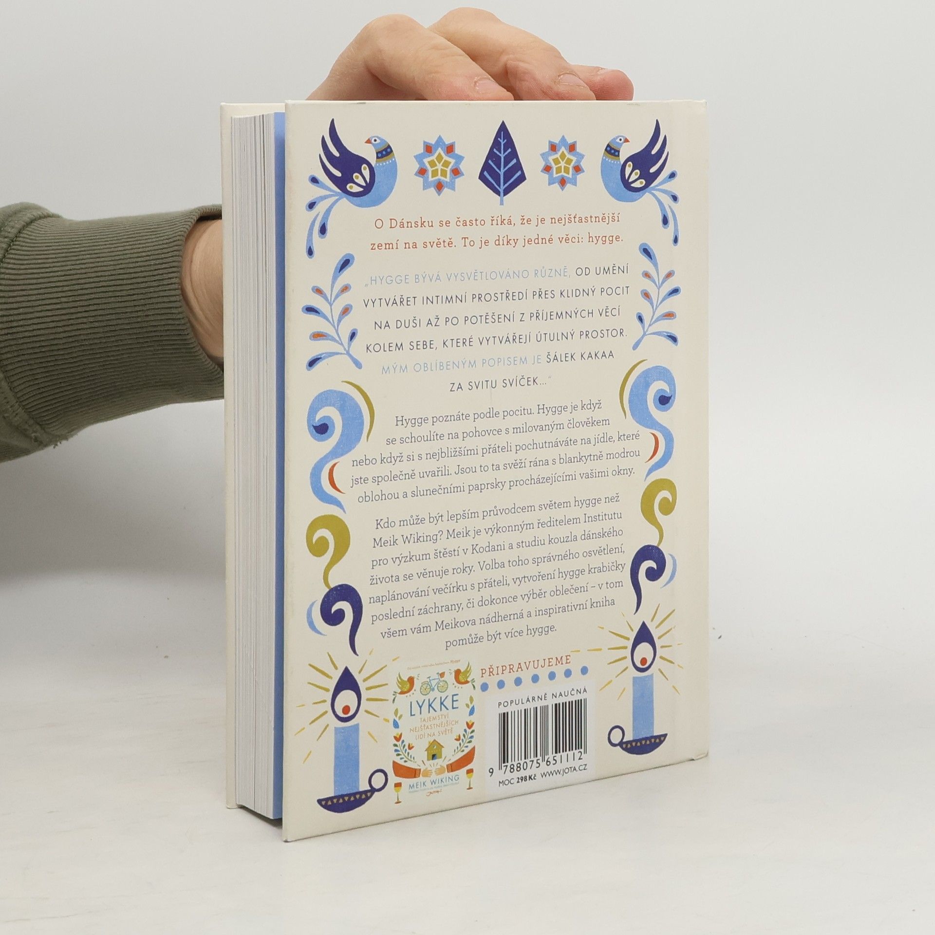 Proč jsou Dánové nejšťastnějšími lidmi na světě? Odpovědí je hygge, říká Meik Wiking, ředitel Institutu pro výzkum štěstí v Kodani. Hygge je pocit, který zažíváte během bouřky, když jste v pohodlných ponožkách schoulení na pohovce, přikrytí měkkou dekou. Je to ten pocit, když u stolu osvětleném svíčkami společně se svými milovanými jíte své oblíbené jídlo a povídáte si. Je to pocit, který se vás zmocní, když se s šálkem oblíbené kávy v ruce díváte na rudé ranní světlo na jasné modré obloze. Hygge je o atmosféře a prožitku. Je to o sdílení se s lidmi, které máme rádi. Pocit domova. Pocit bezpečí. Pocit vnitřního klidu a blaženosti. Tato kniha vám nabídne rady a tipy, jak know-how nejšťastnějšího národa na světě můžete využít ve svém životě i vy. • Udělejte si pohodlí. Dejte si přestávku. • Buďte tady a teď. Vypněte telefony. • Ztlumte světlo. Zapalte svíčky. • Nalijte si víno. Pusťte si svůj oblíbený film. • Budujte vztahy. Udělejte si čas na své blízké. • Přestaňte jíst jen a pouze zdravě. Dort je zcela rozhodně hygge. • Žijte dnes tak, jako by už zítřek nikdy neměl přijít.