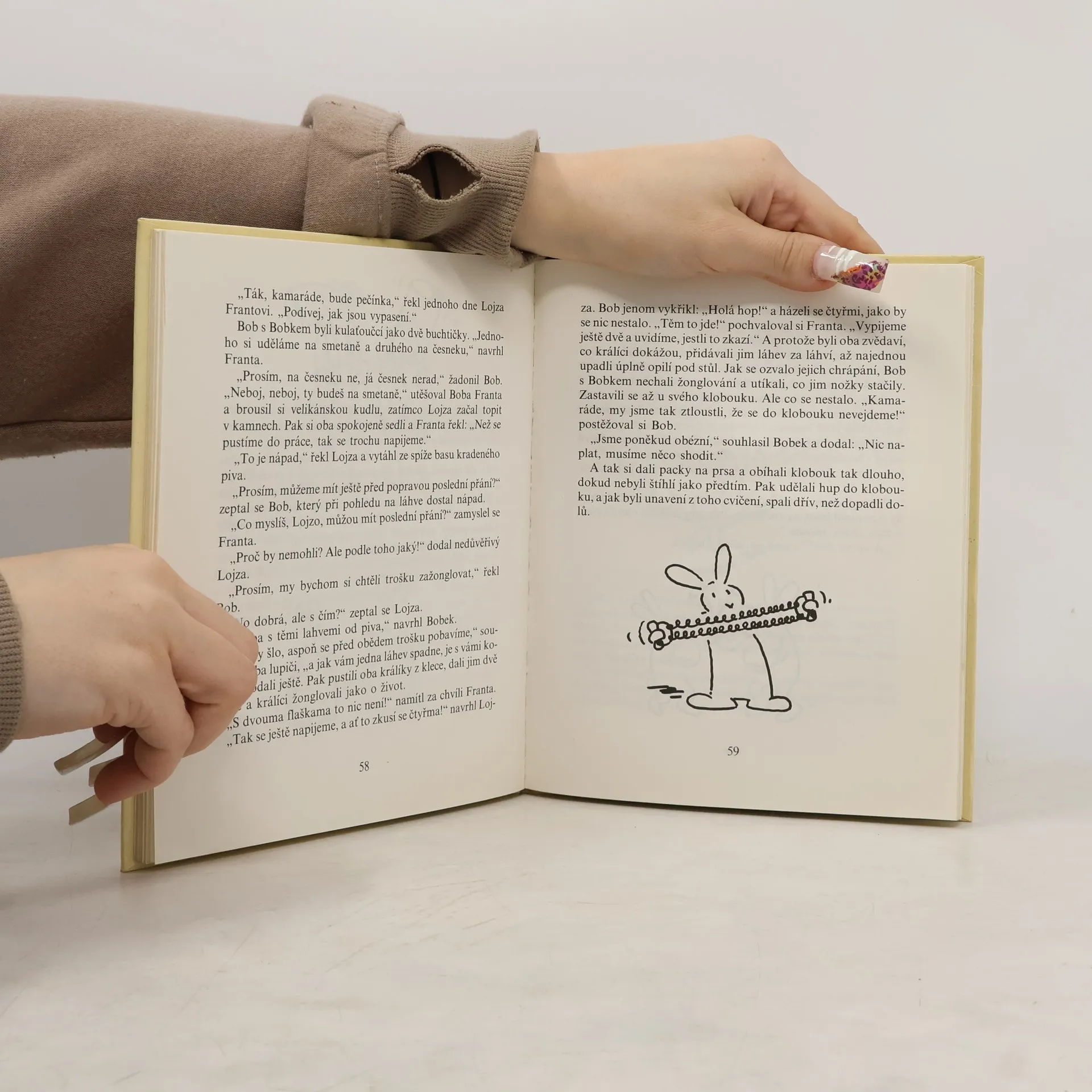 Byli jednou Bob a Bobek a nikdo jim neřekl jinak než králíci z klobouku. Nebyli to obyčejní králíci. Patřili kouzelníkovi Pokustonovi, který je při představení pokaždé vyčaroval z klobouku. Jednou se však stalo, že svůj kouzelnický klobouk zapomněl kdesi na louce, smaringotkou kdovíkam odjel a na milé králíky si ani nevzpomněl. A králíci? Ti se živili, jak svedli. Zahradničili, truhlařili, natírali, zametali, a šlo jim to, no, jedna báseň. Jako sehrané partě.