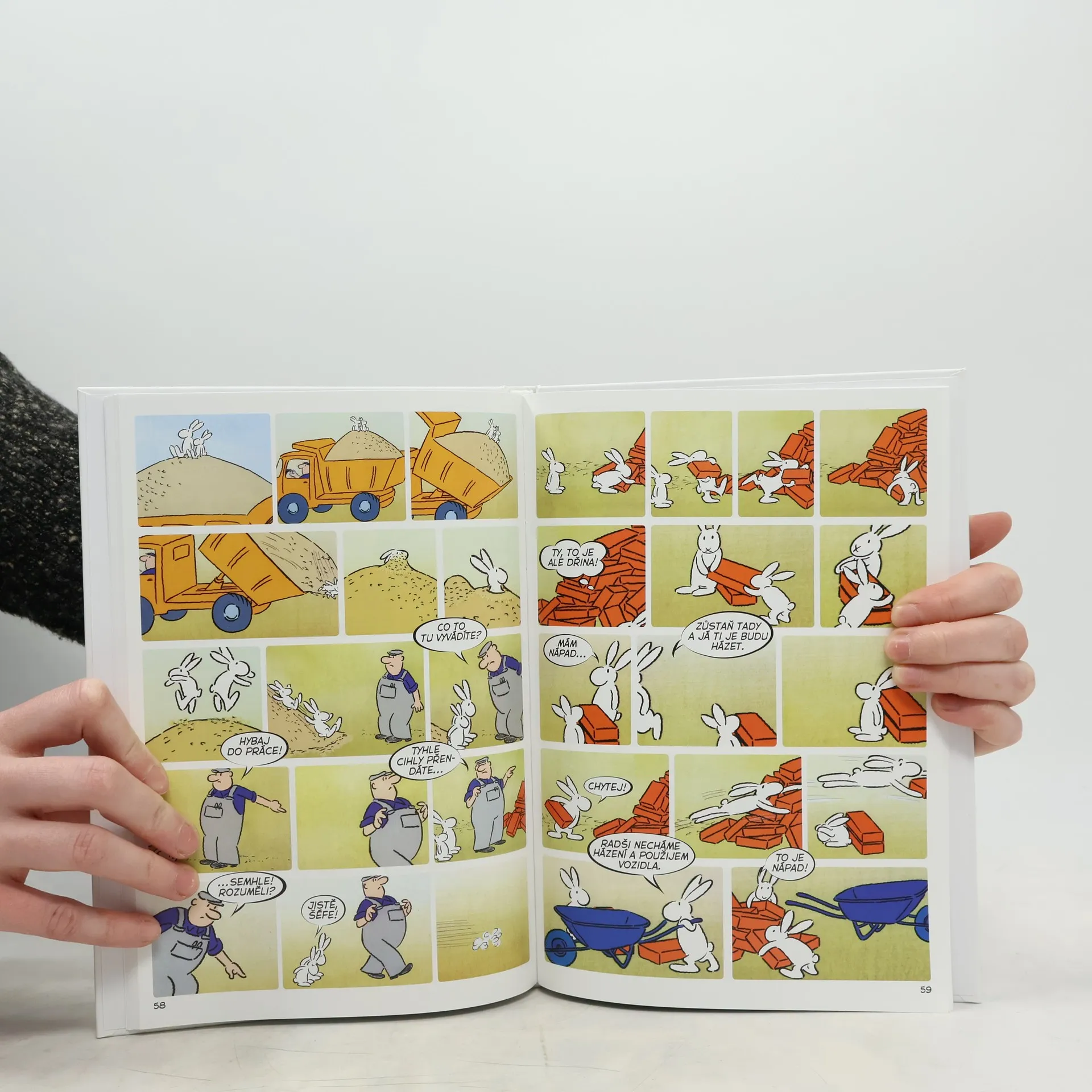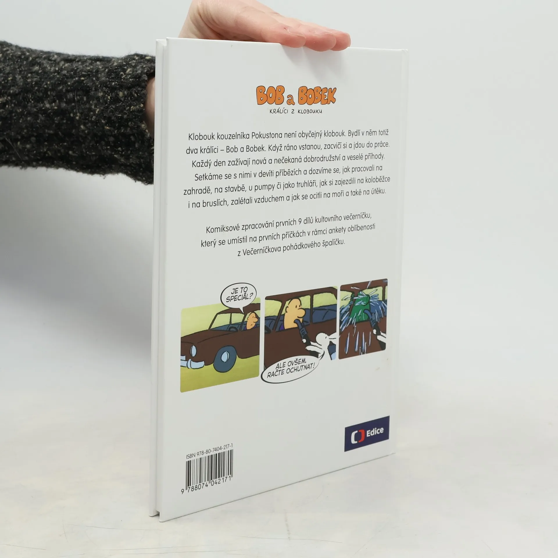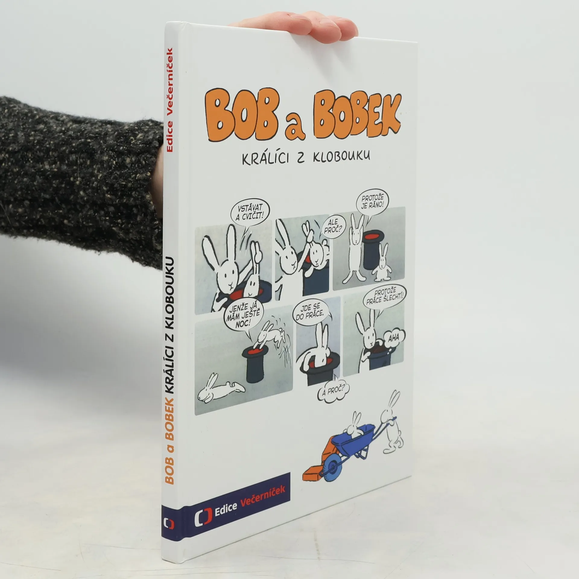 Klobouk kouzelníka Pokustona není obyčejný klobouk. Bydlí v něm totiž dva králíci – Bob a Bobek. Když ráno vstanou, zacvičí si a jdou do práce. Každý den zažívají nová a nečekaná dobrodružství a veselé příhody. Setkáme se s nimi v devíti příbězích a dozvíme se, jak pracovali na zahradě, na stavbě, u pumpy či jako truhláři, jak si zajezdili na koloběžce i na bruslích, jak si zalétali vzduchem a jak se ocitli na moři a také na útěku. Komiksové zpracování prvních 9 dílů kultovního večerníčku, který se umístil na prvních příčkách v rámci ankety oblíbenosti z Večerníčkova pohádkového špalíčku.