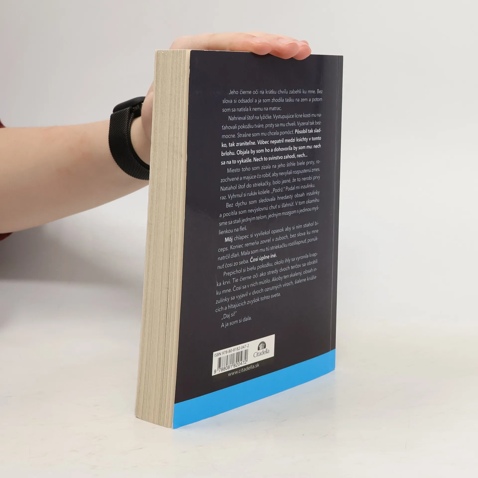 Jeho čierne oči na krátku chvíľu zabehli ku mne. Bez slova si odsadol a ja som zhodila tašku na zem a potom som sa natisla k nemu na matrac. Nahrieval štof na lyžičke. Vystupujúce lícne kosti mu naťahovali pokožku tváre, prsty sa mu chveli. Vyzeral tak bezmocne. Strašne som mu chcela pomôcť. Pôsobil tak sladko, tak zraniteľne. Vôbec nepatril medzi ksichty v tomto brlohu. Objala by som ho a dohovorila by som mu: nech sa na to vykašle. Nech to svinstvo zahodí, nech... Miesto toho som zízala na jeho štíhle biele prsty, rozochvené a majúce čo robiť, aby nevyliali rozpustenú zmes. Natiahol štof do striekačky, bolo jasné, že to nerobí prvý raz. Vyhrnul si rukáv košele. „Podrž“. Podal mi inzulínku. Bez dychu som sledovala hnedastý obsah inzulínky a pocítila som nevýslovnú chuť si šľahnúť. V tom okamihu sme sa stali jedným telom, jedným mozgom a jedinou myšlienkou na fleš. Môj chlapec si vyvliekol opasok aby si ním stiahol biceps. Koniec remeňa zovrel v zuboch, bez slova ku mne natrčil dlaň. Mala som mu tú striekačku rozšliapnuť, ponúknuť čosi zo seba. Čosi úplne iné. Prepichol si bielu pokožku, okolo ihly sa vyronila kvapka krvi. Tie čierne oči ako stredy dvoch terčov sa obrátili ku mne. Čosi sa v nich mútilo. Akoby ten skalený, obsah inzulínky sa vyjavil v dvoch ozrutných víroch, šialene krúžiacich a hltajúcich zvyšok tohto sveta. „Daj si!“ A ja som si dala.