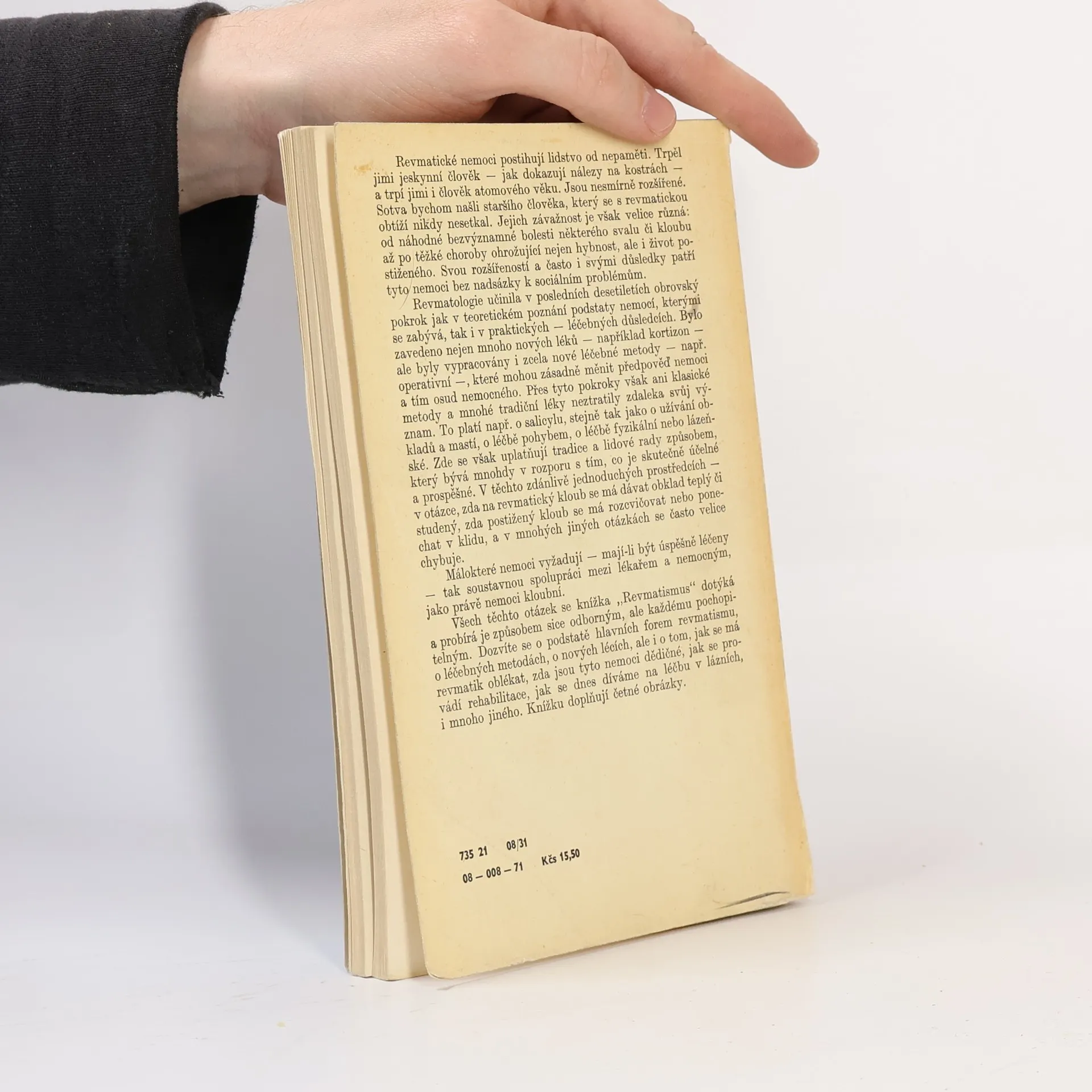 Obecně srozumitelný rádce pro nemocné, postižené revmatickou horečkou, vleklým zánětlivým hostcem kloubním (progresívní polyartritidou) , postupným zánětlivým tuhnutím páteře (Bechtěrevovou chorobou) nebo jinými typy artritid,dnou, artrózou, mimokloubním revmatismem či bolestí v ramenou.Autor své léčebné instrukce vždy zdůvodňuje. Závěrem seskupuje do zvláštní kapitoly některé nejčastěji aktuální pokyny.