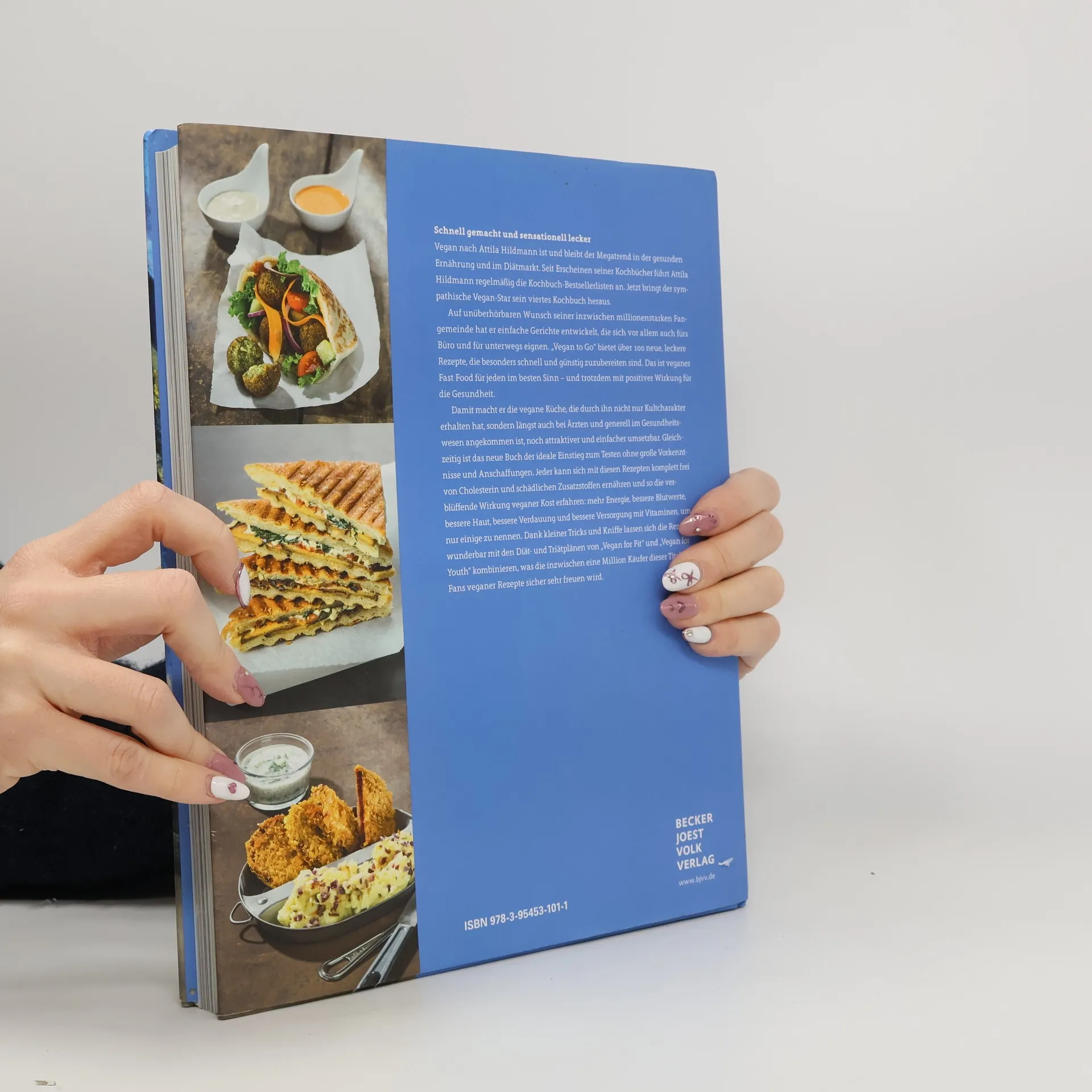Schnell gemacht und sensationell lecker! Vegan nach Attila Hildmann ist und bleibt der Megatrend in der gesunden Ernährung und im Diätmarkt. Seit Erscheinen seiner Kochbücher führt Attila Hildmann nahezu unangefochten die Kochbuch-Bestsellerlisten an. Jetzt bringt der sympathische Veganstar sein viertes Kochbuch heraus. Auf unüberhörbaren Wunsch seiner inzwischen millionenstarken Fangemeinde hat er einfache, schnelle Gerichte entwickelt, die sich vor allem auch fürs Büro und für unterwegs eignen. „Vegan to Go“ bietet über 100 neue leckere Rezepte, die diesmal besonders einfach, schnell und sogar günstig herzustellen sind. Das ist veganes Fast Food für jeden im besten Sinne, mit positiver Wirkung für die Gesundheit. Damit macht er die vegane Küche, die durch ihn nicht nur Kultcharakter bekommen hat, sondern längst auch bei Ärzten und generell im Gesundheitswesen angekommen ist, noch attraktiver und einfacher umsetzbar. Gleichzeitig ist das neue Buch der ideale Einstieg zum Testen ohne große Vorkenntnisse und Anschaffungen. Dank kleiner Tipps und Kniffe lassen sich die Rezepte auch wunderbar mit den Diät- und Triätplänen der ersten drei Bücher kombinieren, was die inzwischen 700.000 Käufer dieser Titel sicher sehr freuen wird.