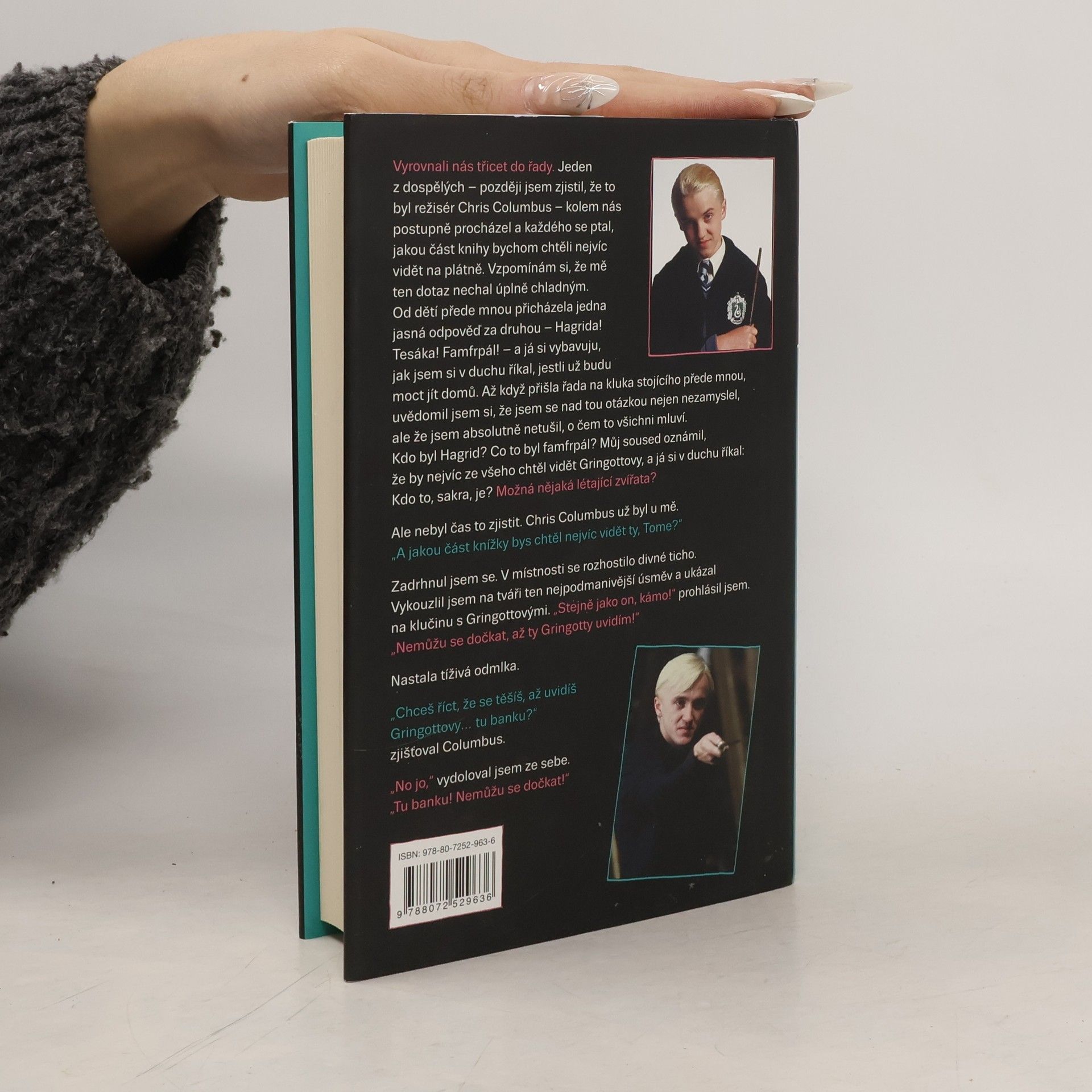 Naprostá nezbytnost pro každého fanouška Harryho Pottera. S předmluvou filmové Hermiony – herečky Emmy Watsonové. Doplněno o dosud nezveřejněné fotky z natáčení filmů, které změnily svět. Jaké bylo dospívání uprostřed natáčení toho největšího filmového hitu posledních dekád? Filmový Draco Malfoy, hlavní rival Harryho Pottera, se po letech rozhodl svěřit s těmi nejosobnějšími i nejvtipnějšími vzpomínkami na více než deset let natáčení filmů, jejichž knižní předloha změnila svět a stala se unikátním fenoménem a popkulturním hitem. Jen málokdo může tvrdit, že vystudoval tu nejprestižnější kouzelnickou školu světa v Bradavicích. Herec Tom Felton si touto zkušenosti prošel, byť patřil do té nejméně populární a nejobávanější zmijozelské koleje. -Kdo z filmového obsazení Tomovi nejvíce přirostl k srdci? -Jak to ve skutečnosti bylo s Tomovým románkem s filmovou Hermionou Emmou Watsonovou? -A co dokázalo doběla rozčílit obávaného profesora Snapea? Varování! Tato kniha vás přiměje silně přehodnotit vztah k jedné z nejnenáviděnějších filmových postav všech dob.
