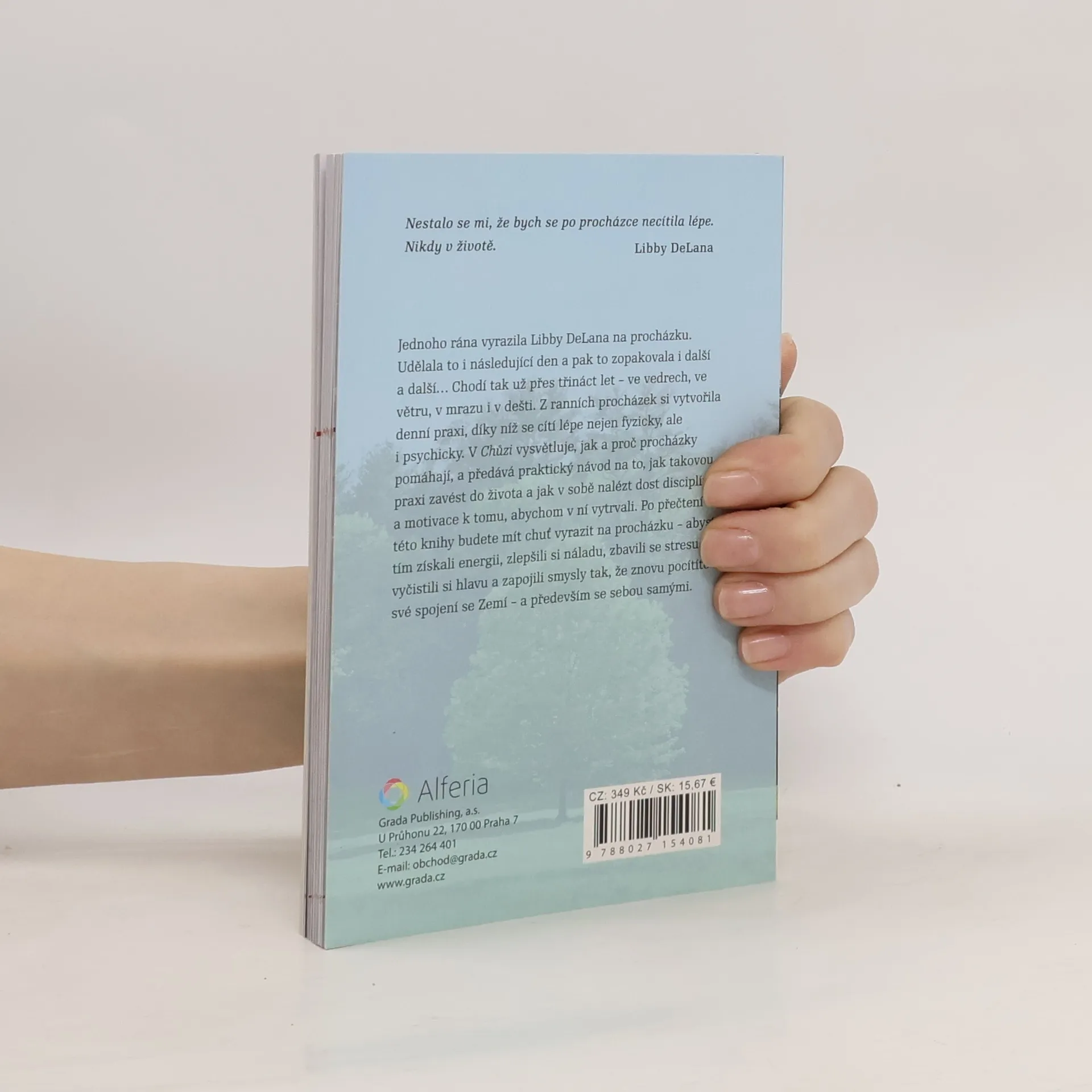 Jednoho rána vyrazila Libby DeLana na procházku. Udělala to i následující den a pak to zopakovala i další a další… bez přestávky to dělá už přes třináct let – ve vedrech, ve větru, v mrazu i v dešti. Z ranních procházek si udělala každodenní praxi, díky níž se cítí lépe nejen fyzicky, ale i psychicky. V Chůzi vysvětluje, jak a proč každodenní procházky pomáhají, a předává velmi praktický návod na to, jak takovou praxi zavést do života a jak v sobě nalézt dost disciplíny a motivace k tomu, abychom v ní vytrvali. Po přečtení této knihy budete mít bezpochyby chuť vyrazit na procházku – abyste tím získali energii, zlepšili si náladu i schopnost koncentrace, zbavili se stresu, odblokovali svou kreativitu, uzemnili se, vyčistili si hlavu, přenastavili mysl a zapojili své smysly tak, že znovu pocítíte své spojení se Zemí – a především se sebou samými.
