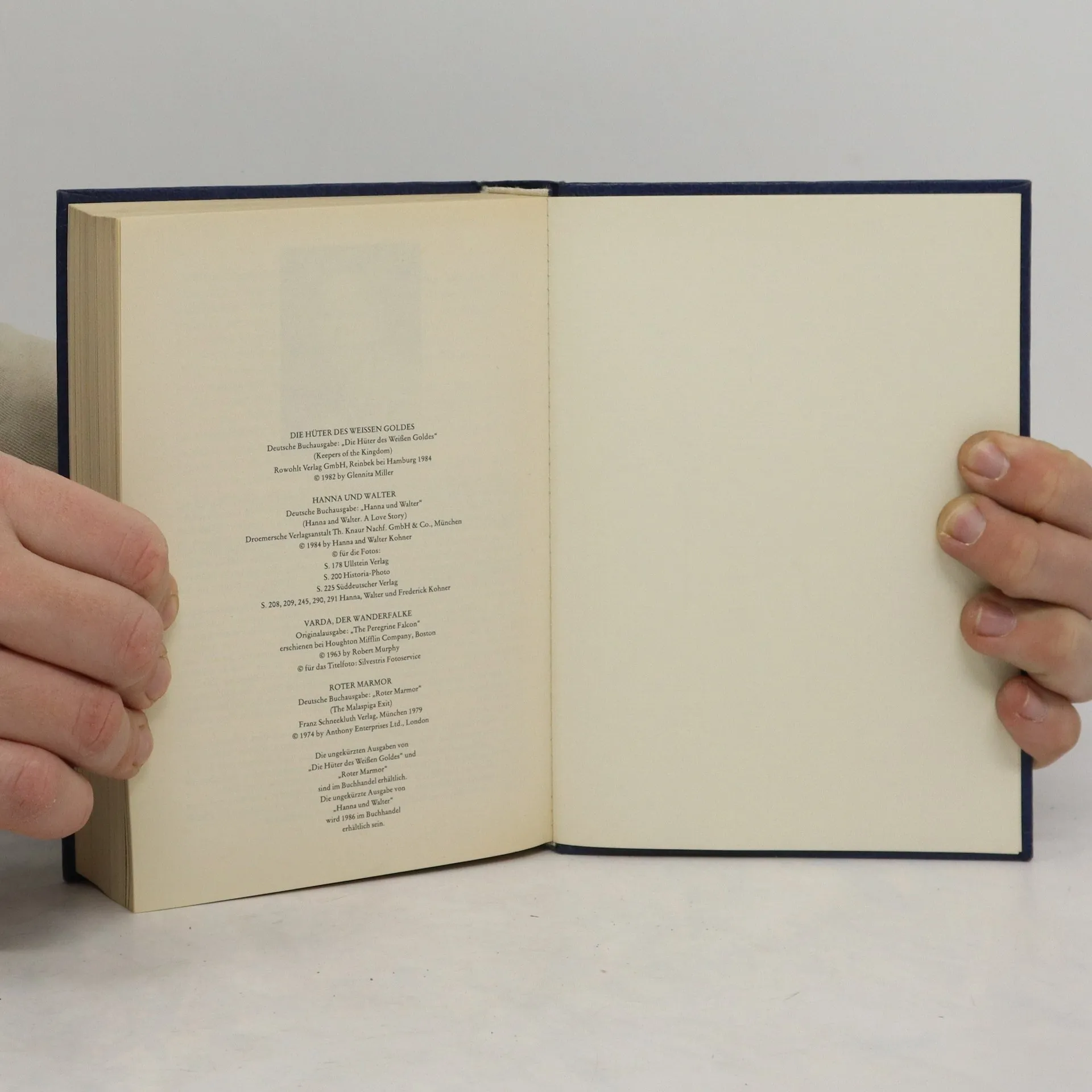 Reader's Digest Auswahlbücher : Die Hüter des weissen Goldes, Hanna und Walter, Varda, der Wanderfalke, Rotter Marmor
