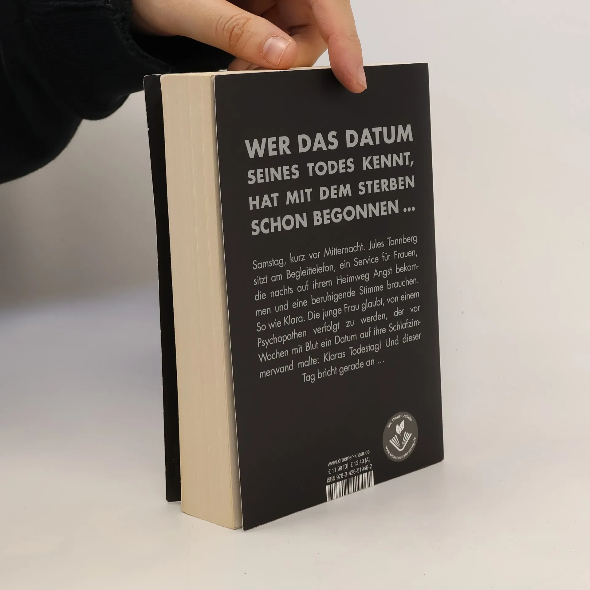 Wer das Datum seines Todes kennt, hat mit dem Sterben schon begonnen - der neue Bestseller von Sebastian Fitzek! Es ist Samstag, kurz nach 22.00 Uhr. Jules Tannberg sitzt am Begleittelefon. Ein ehrenamtlicher Telefonservice für Frauen, die zu später Stunde auf ihrem Heimweg Angst bekommen und sich einen telefonischen Begleiter wünschen, dessen beruhigende Stimme sie sicher durch die Nacht nach Hause führt - oder im Notfall Hilfe ruft. Noch nie gab es eine wirklich lebensgefährliche Situation. Bis heute, als Jules mit Klara spricht. Die junge Frau hat entsetzliche Angst. Sie glaubt, von einem Mann verfolgt zu werden, der sie schon einmal überfallen hat und der mit Blut ein Datum auf ihre Schlafzimmerwand malte: Klaras Todestag! Und dieser Tag bricht in nicht einmal zwei Stunden an ... Geheimnisvoll, beklemmend, nervenaufreibend. Sebastian Fitzeks bislang unheimlichster Psychothriller.