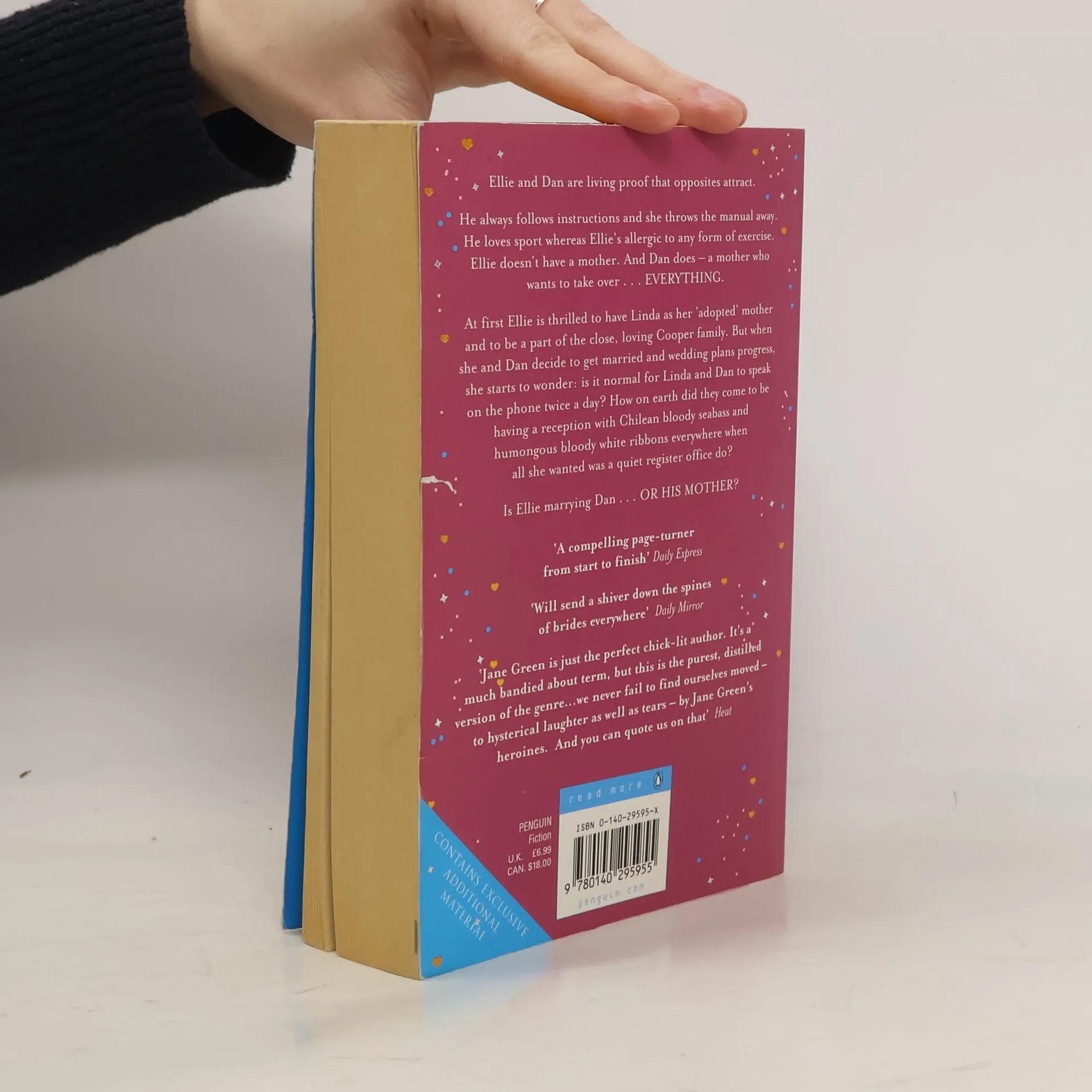 Ellie and Dan are living proof that opposites attract. He always follows instructions and she throws the manual away. He loves sports whereas Ellie's allergic to any form of exercise. Ellie doesn't have a mother. And Dan does - a mother who wants to take over... EVERYTHING. At first Ellie is thrilled to have Linda as her 'adopted'mother and to be a part of the close, loving Cooper family. But when she and Dan decide to get married and wedding plans progress, she starts to wonder: is it normal for Linda and Dan to speak on the phone twice a day? How on earth do they come to be having a reception with Chilean bloody seabass and humongous bloody white ribbons tied everywhere when all she wanted was a quiet registry office? In fact, is she marrying Dan...OR HIS MOTHER? And Ellie's problems have just begun. When she discovers she's pregnant she realises that Linda's only been rehearsing for the real takeover. She seems to want to live her life through Ellie and in the words of the immortal Princess Diana, there are three of them in the marriage...
