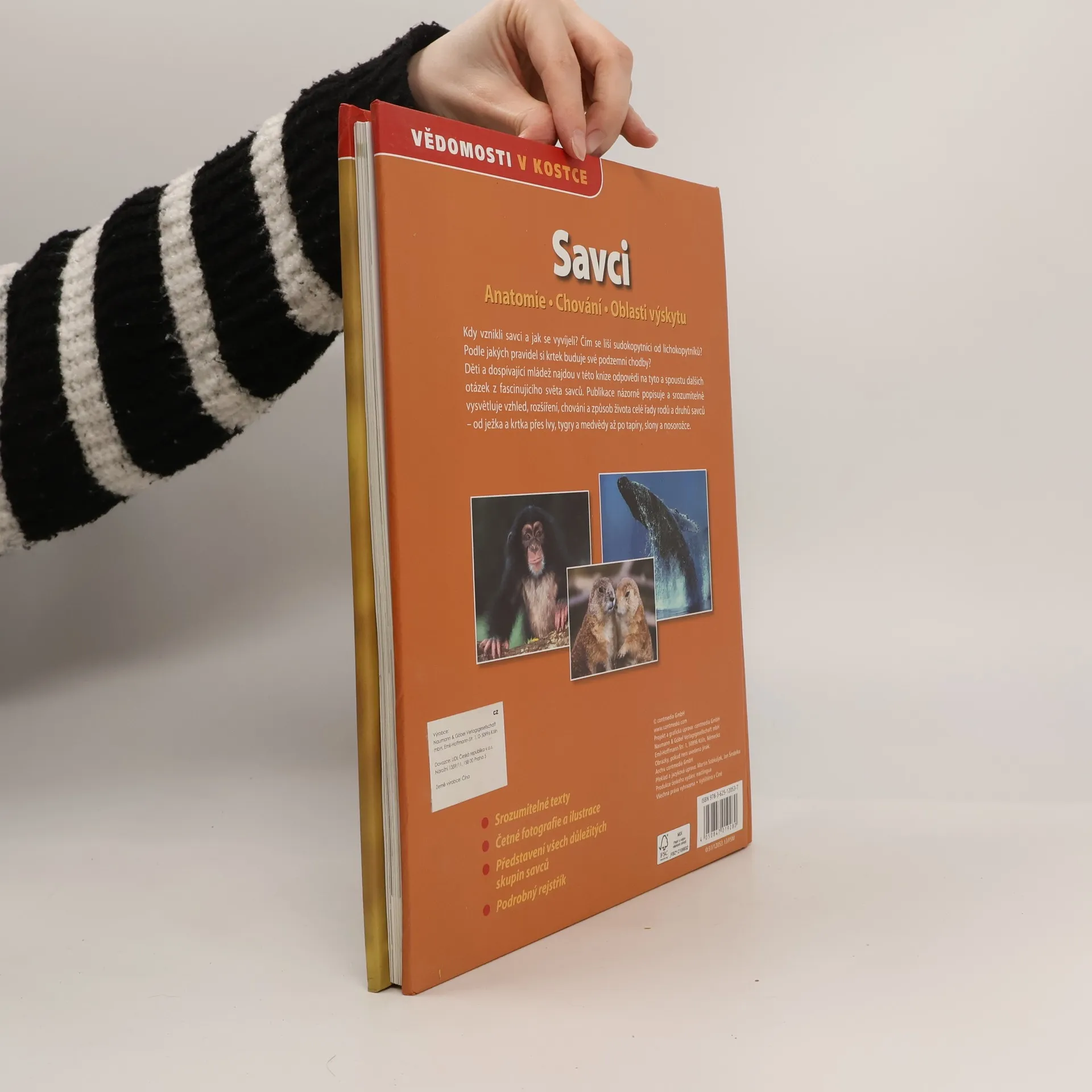 Anatomie - chování - oblasti výskytu Ponoř se do světa vědomostí a poznání. Čím se liší lenochod od koaly? Jak vypadají divoce žijící příbuzní našich domácích koček a psů? Které jsou nejdůležitější skupiny savců? Hledáš odpovědi na tyto a spoustu dalších otázek z fascinujícího světa zvířat a biologie? Potom se podívej do této knihy a objev nejrůznější zajímavosti ze života savců. Dozvíš se, kde žijí které druhy opic nebo jak si krtek buduje své podzemní chodby. Můžeš si prohlédnout kostru žirafy nebo se ponořit pod mořskou hladinu do světa kytovců, tuleňů a delfínů. Informativní a poutavé texty a přes 200 fotografií a ilustrací představují nejdůležitější druhy savců - od antilop až po žirafy.