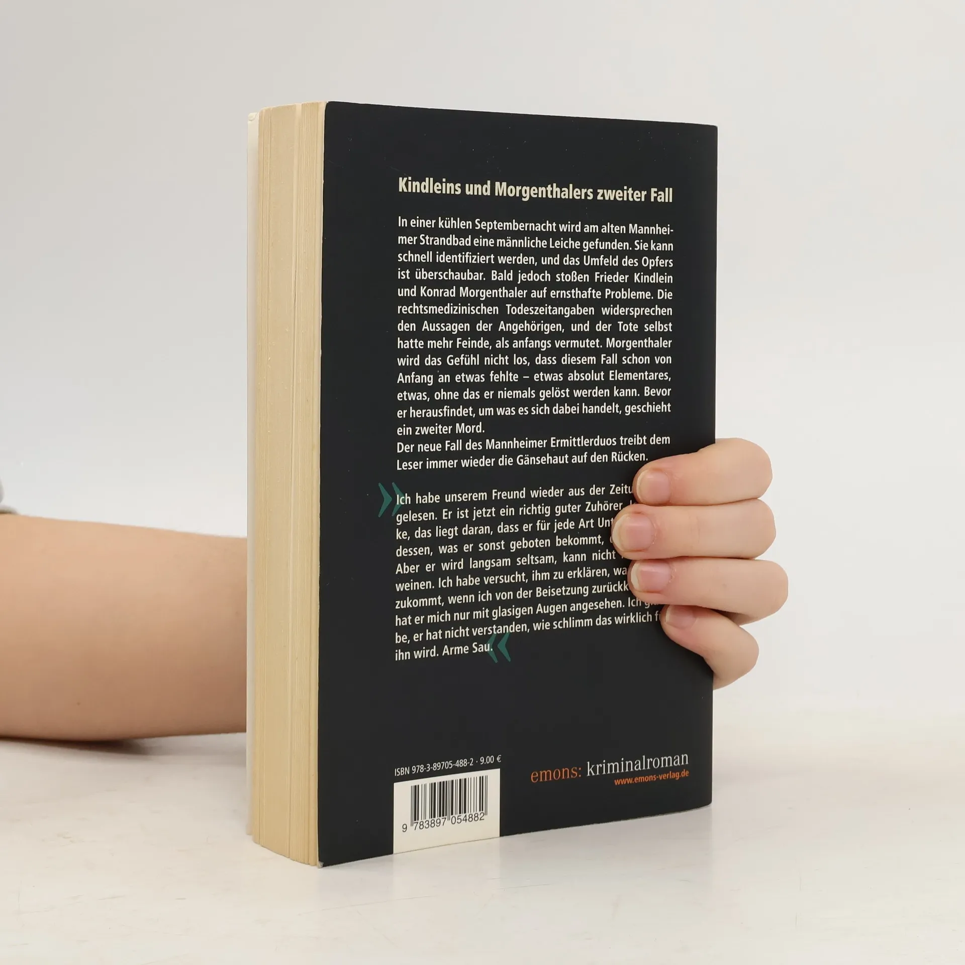 In einer Septembernacht wird am Mannheimer Strandbad eine männliche Leiche entdeckt. Die Ermittler Frieder Kindlein und Konrad Morgenthaler stehen vor widersprüchlichen Beweisen und einem zweiten Mord. Morgenthaler spürt, dass etwas Entscheidendes fehlt, um den Fall zu lösen, was die Spannung bis zur Aufklärung erhöht.