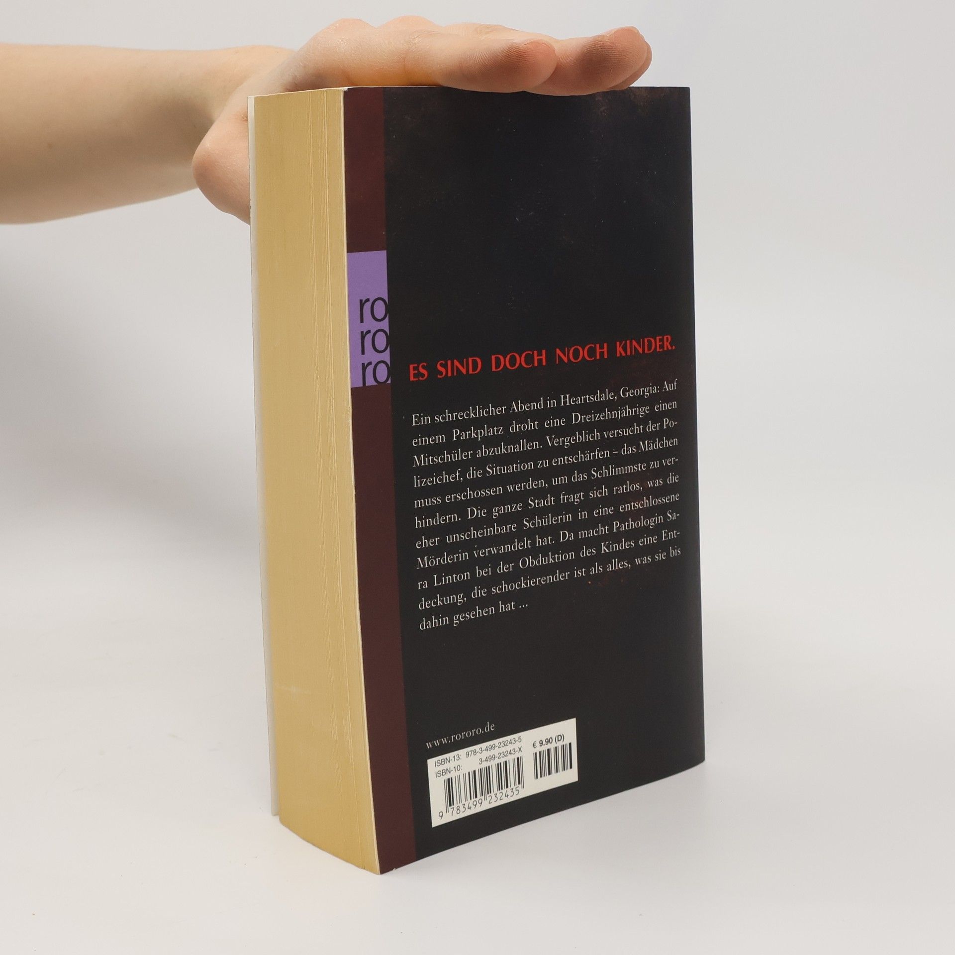 Es sind doch noch KinderEin schrecklicher Abend in Heartsdale, Georgia: Auf einem Parkplatz droht eine Dreizehnjährige einen Mitschüler abzuknallen. Vergeblich versucht der Polizeichef, die Situation zu entschärfen – das Mädchen muss erschossen werden, um das Schlimmste zu verhindern. Die ganze Stadt fragt sich ratlos, was die eher unscheinbare Schülerin in eine entschlossene Mörderin verwandelt hat. Da macht Pathologin Sara Linton bei der Obduktion des Kindes eine Entdeckung, die schockierender ist als alles, was sie bis dahin gesehen hat…