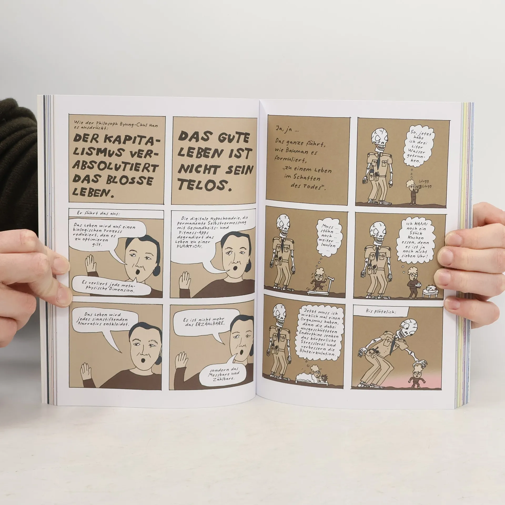 Liv Strömquist untersucht in ihrem neuen Buch die Ratschläge von sieben „Influencern“ zur Lebensoptimierung. Dabei begegnen wir unter anderem Ronald Reagans Astrologin, der Heiligen Katharina von Siena und Herzogin Meghan Markle, die alle unterschiedliche Perspektiven auf das Leben und dessen Herausforderungen bieten.