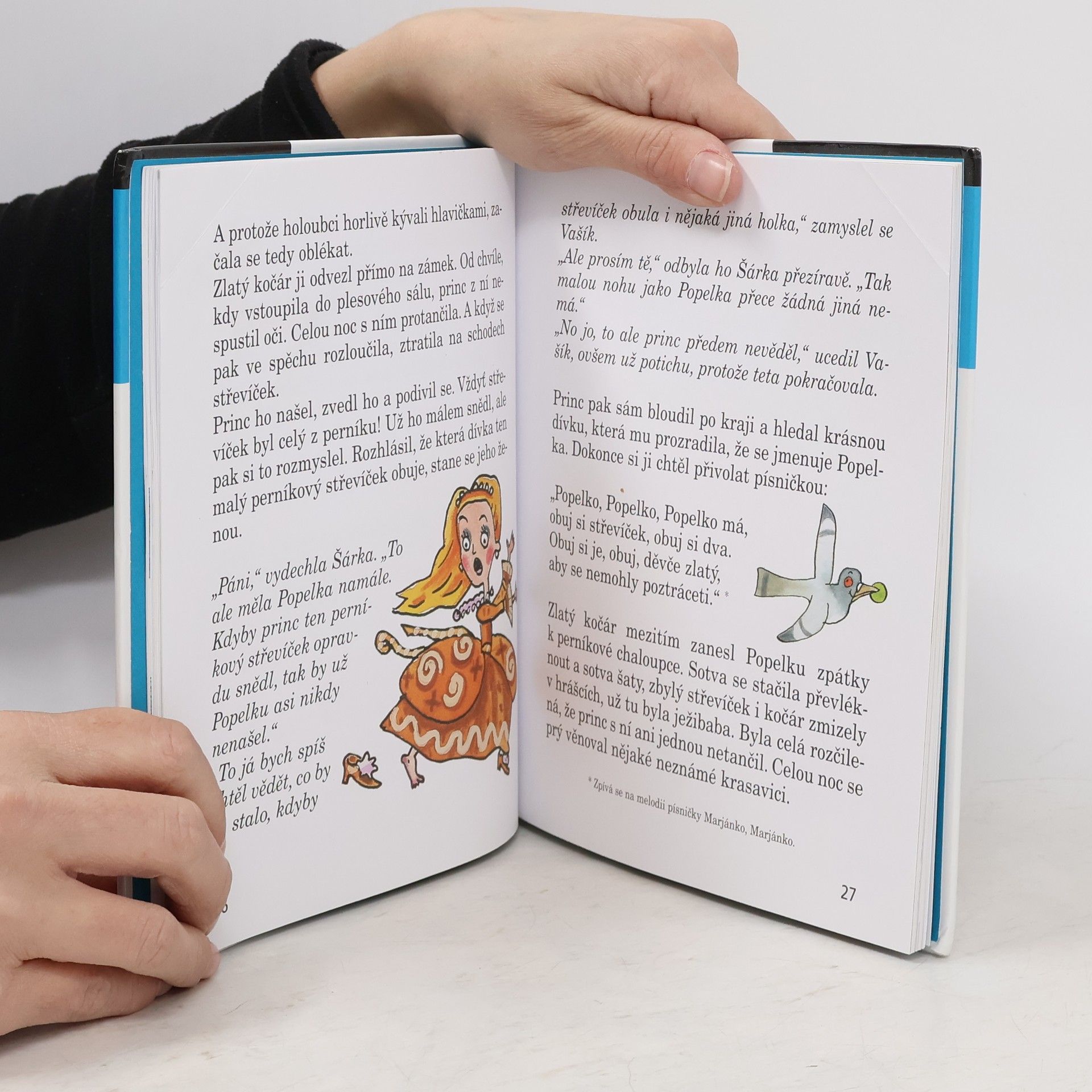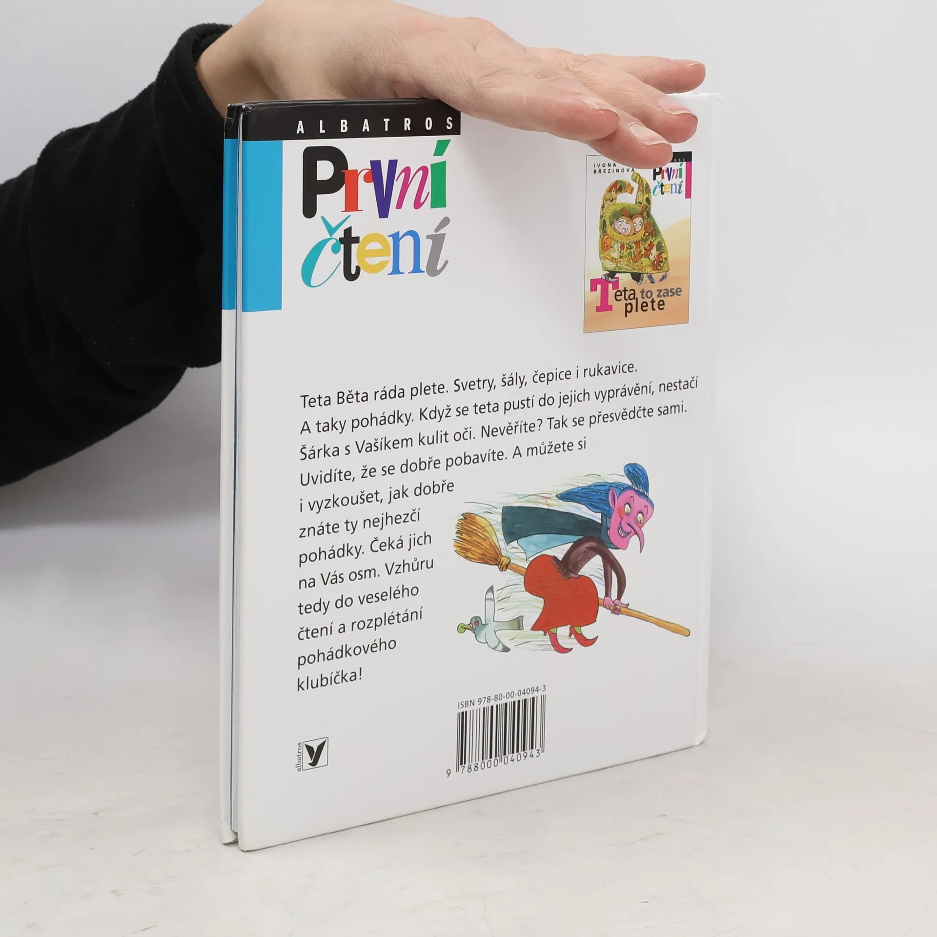 Teta Běta ráda plete. Svetry, čepice, rukavice i šály. A taky pohádky. Když se teta pustí do jejich vyprávění, nestačí Šárka s Vašíkem kulit oči. V tetiných pohádkách Červená karkulka potká v lese jelena se zlatými parohy, Popelka leze na strom a  hledá světýlko, Sněhurka trpaslíkům vaří ze známého hrnečku kaši a  probuzení Šípkové Rů- ženky je přímo k neuvěření. Malí čtenáři si však na nich mohou skvěle vyzkoušet, jak dobře znají ta nejhezčí pohádková vyprávění.