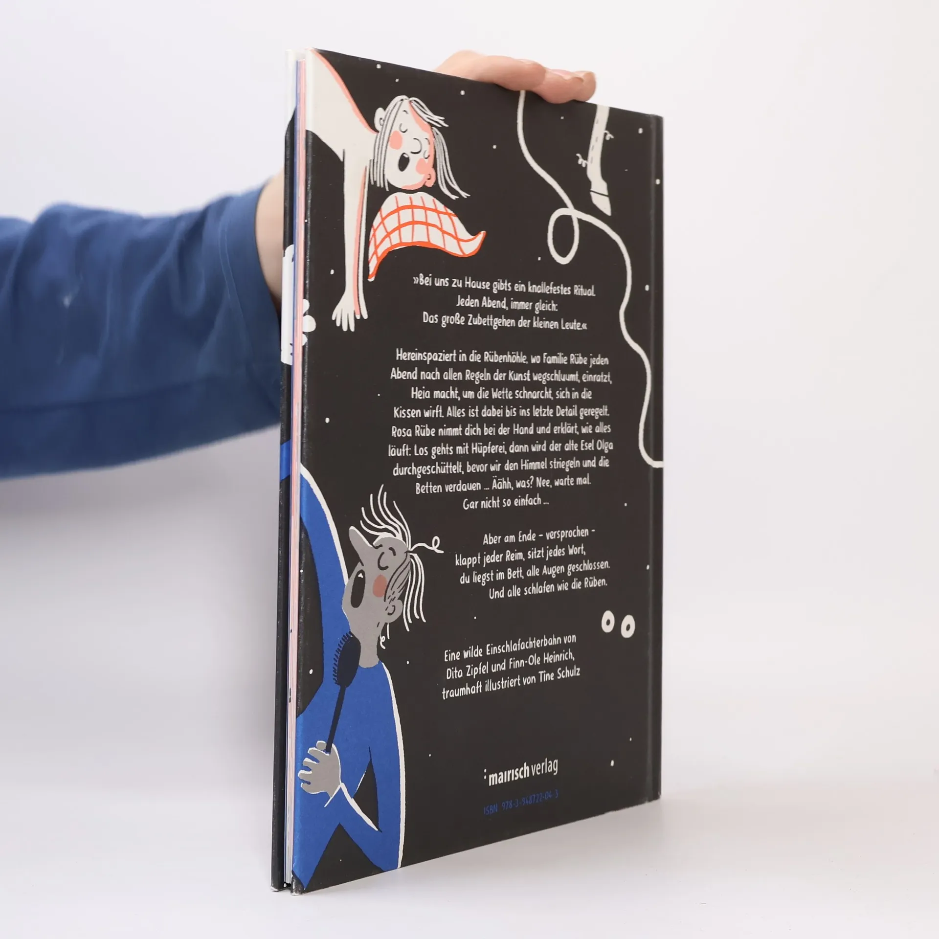 In "Die Rübenhöhle" von Finn-Ole Heinrich und Dita Zipfel geht es um die abendlichen Rituale der Familie Rübe, die spielerisch ins Bett gehen. Ein chaotischer Einschlafreim führt durch verschiedene lustige Aktivitäten und wird mit der Zeit ruhiger, bis alle friedlich einschlafen. Wunderschön illustriert von Tine Schulz.