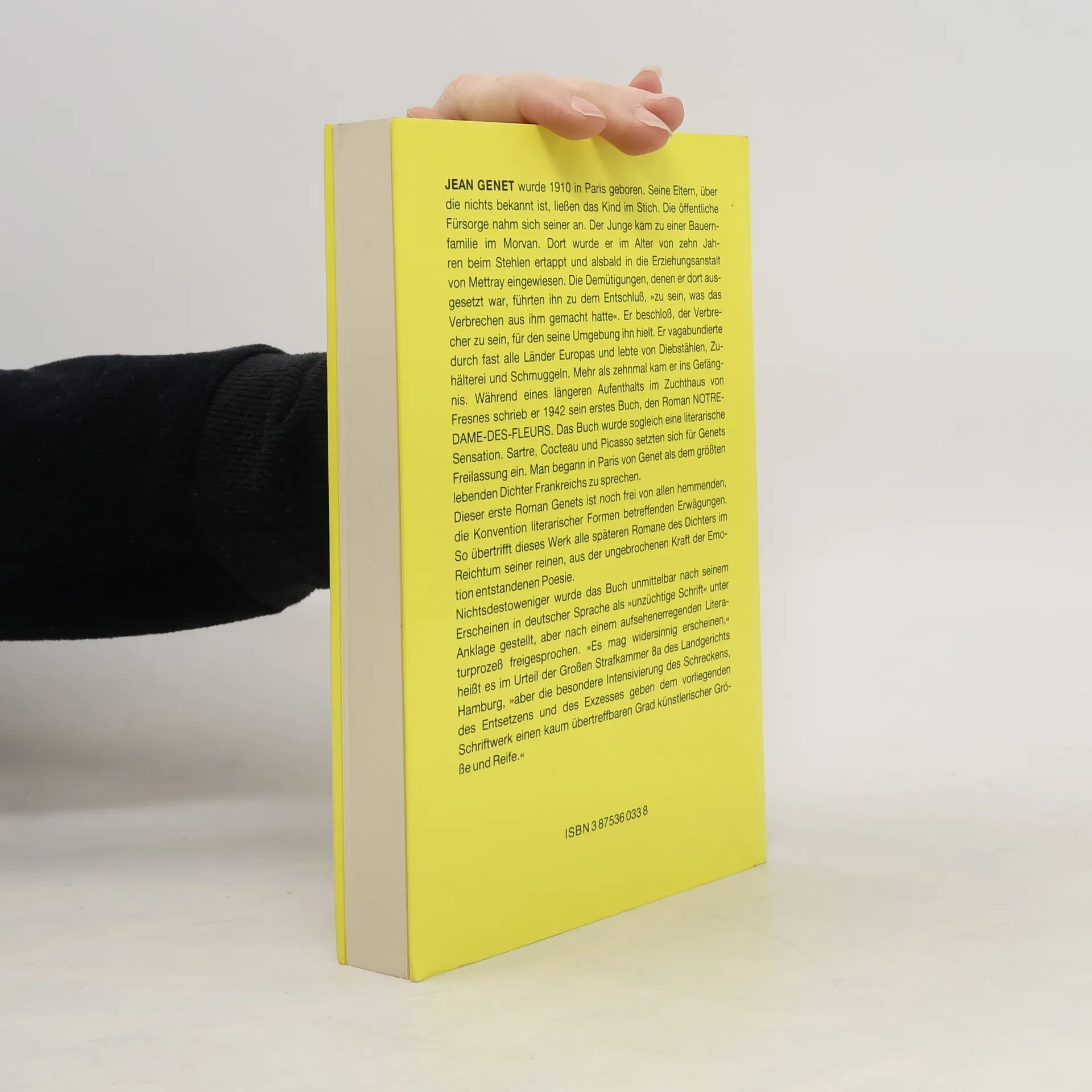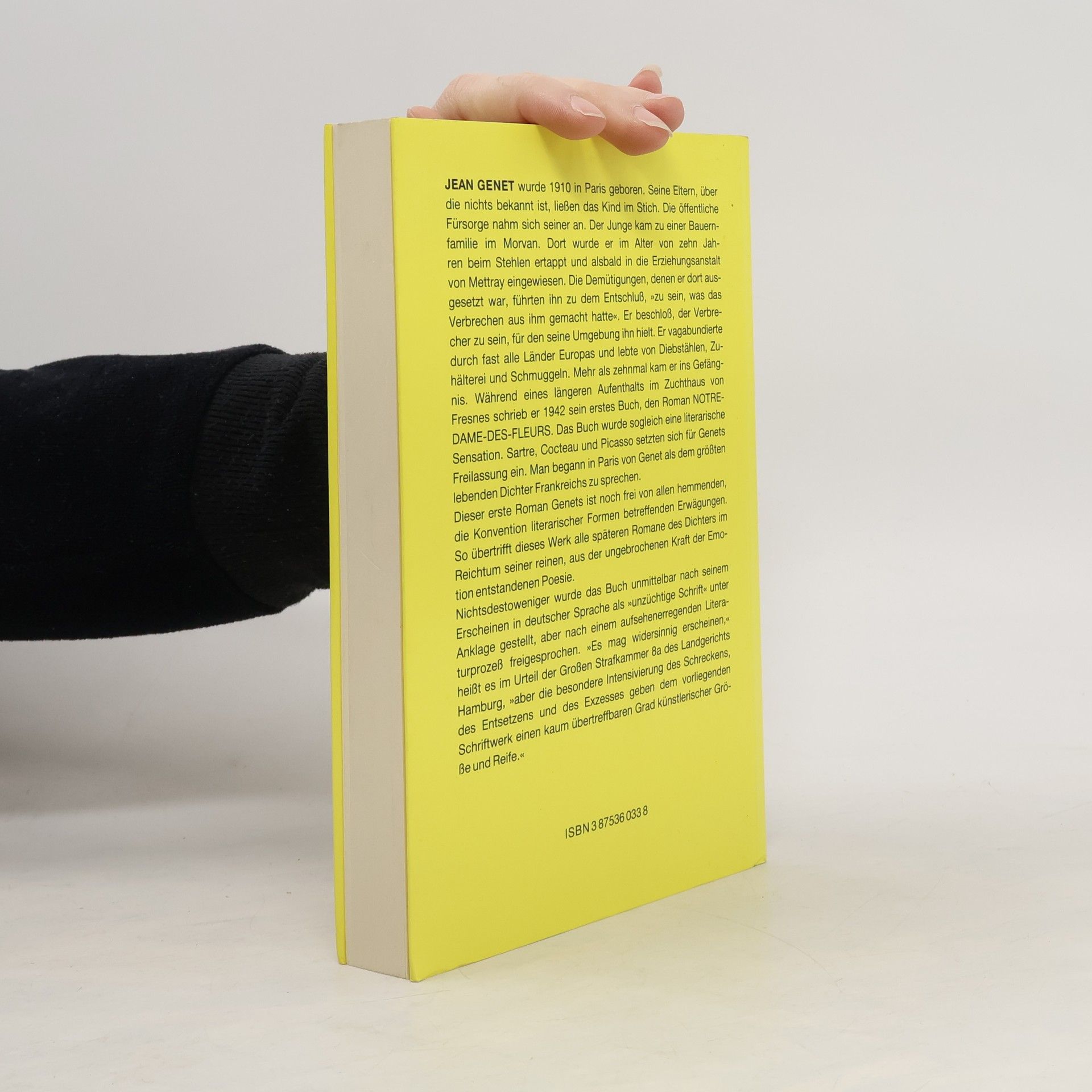 „Der Sprengkörper Genet. Das Buch ist hier, in dieser Wohnung, fürchterlich, obszön, unpublizierbar, unvermeidbar. Man weiß nicht, wie es nehmen. Es ist. Es wird sein. Wird es die Welt zwingen, so zu werden, dass es in ihr erscheinen kann? Für mich bedeutet es das große Ereignis der Epoche. Es bringt mich in Aufruhr, es widert mich an und es verzaubert mich. Es wirft unzählige Fragen auf. Es kommt daher auf den leichten Füßen des Skandals, mit seinen Samtfüßen ... Ich habe Notre-Dame-des-Fleurs Zeile für Zeile wiedergelesen ... Das Gedicht "Le Condamné à Mort" reihte sich noch zu anderen Gedichten. Hier aber haben wir die Einsamkeit und das Funkeln eines dunklen Sternes vor uns.“ Jean Cocteau, Tagebucheintrag vom 22. Februar 1943 Dank der Vermittlung von Jean Cocteau wurde die Erstausgabe des ersten Romans von Jean Genet 1944 in Frankreich veröffentlicht. In Deutschland erschien der Roman erstmals im Jahr 1960 und löste sogleich eine Anklage wegen Verbreitung unzüchtiger Schriften aus. Der sich daraus ergebende Prozess am Landgericht Hamburg endete im Jahr 1962 mit einem Freispruch des Buches und bewirkte die weitgehende Liberalisierung der literarischen Zensur in Deutschland.