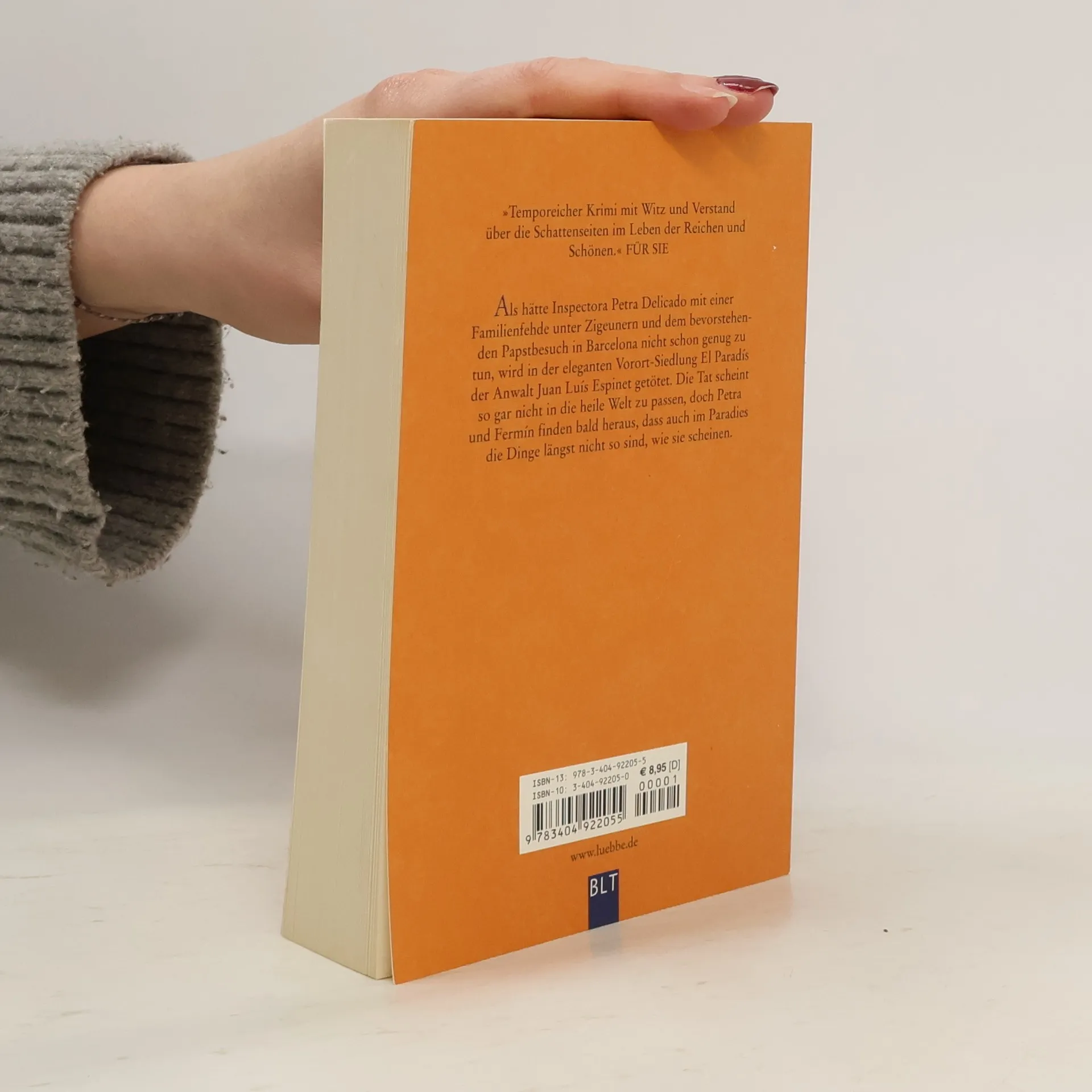 Als hätte Inspectora Petra Delicado mit einer Familienfehde unter Zigeunern und der dem bevorstehenden Papstbesuch in Barcelona nicht schon genug zu tun, wird in der eleganten Vorort-Siedlung El Paradís der erfolgreiche Anwalt Juan Luís Espinet getötet. Die Tat scheint so gar nicht in die heile Welt zu passen, doch Petra und Fermín finden schnell heraus, dass auch im Paradies die Dinge längst nicht so sind, wie sie scheinen.