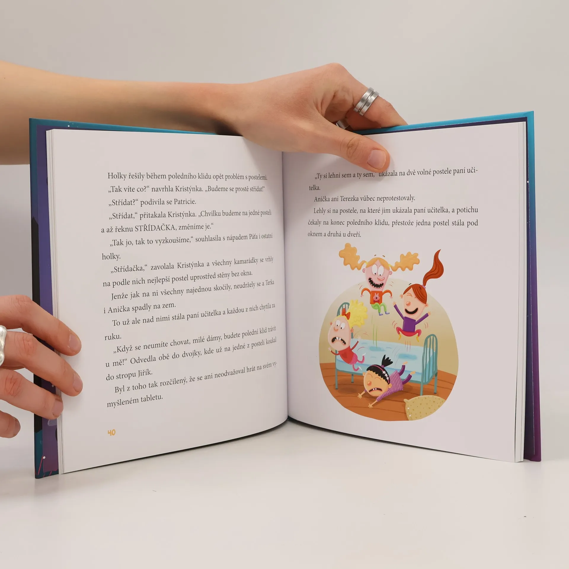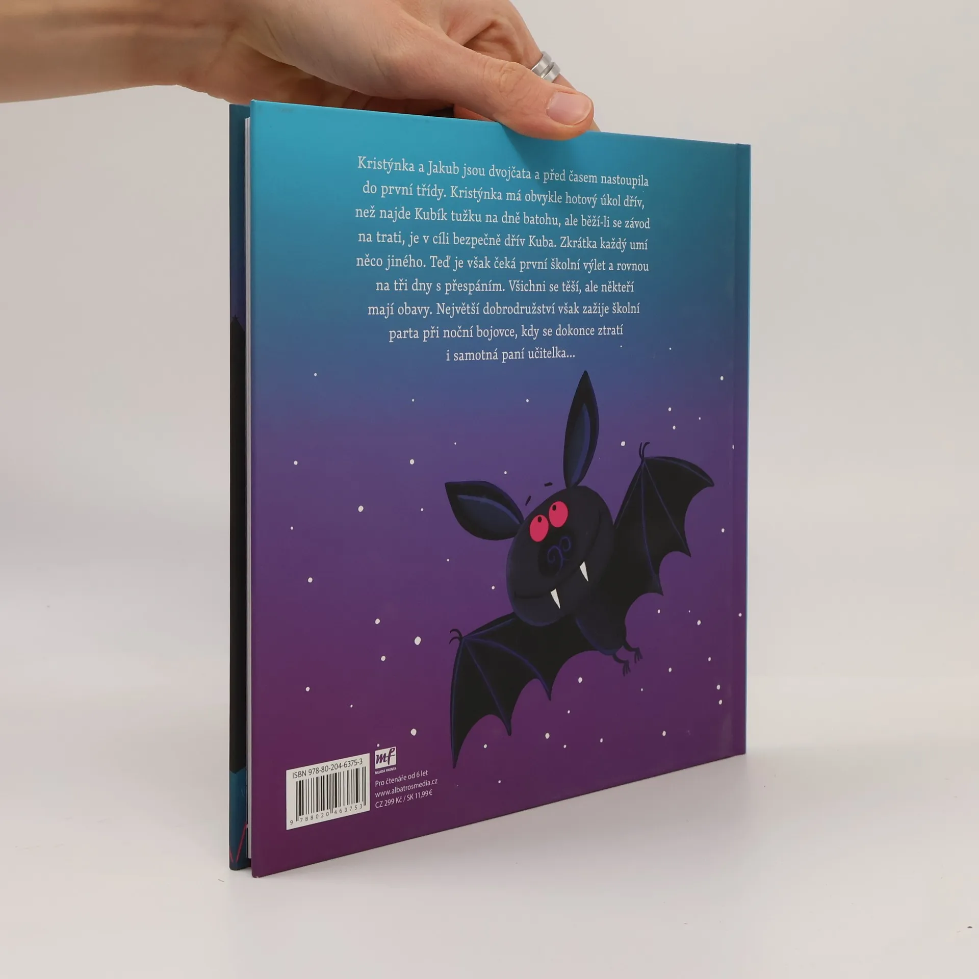 Kristýnka a Jakub jsou dvojčata a před časem nastoupila do první třídy. Kristýnka má obvykle hotový úkol dřív, než najde Kubík tužku na dně batohu, ale běží-li se závod na trati, je v cíli bezpečně dřív Kuba. Zkrátka každý umí něco jiného. Teď je však čeká první školní výlet a rovnou na tři dny s přespáním. Všichni setěší, ale někteří mají obavy. Největší dobrodružství však zažije školní parta při noční bojovce, kdy se dokonce ztratí i samotná paní učitelka...