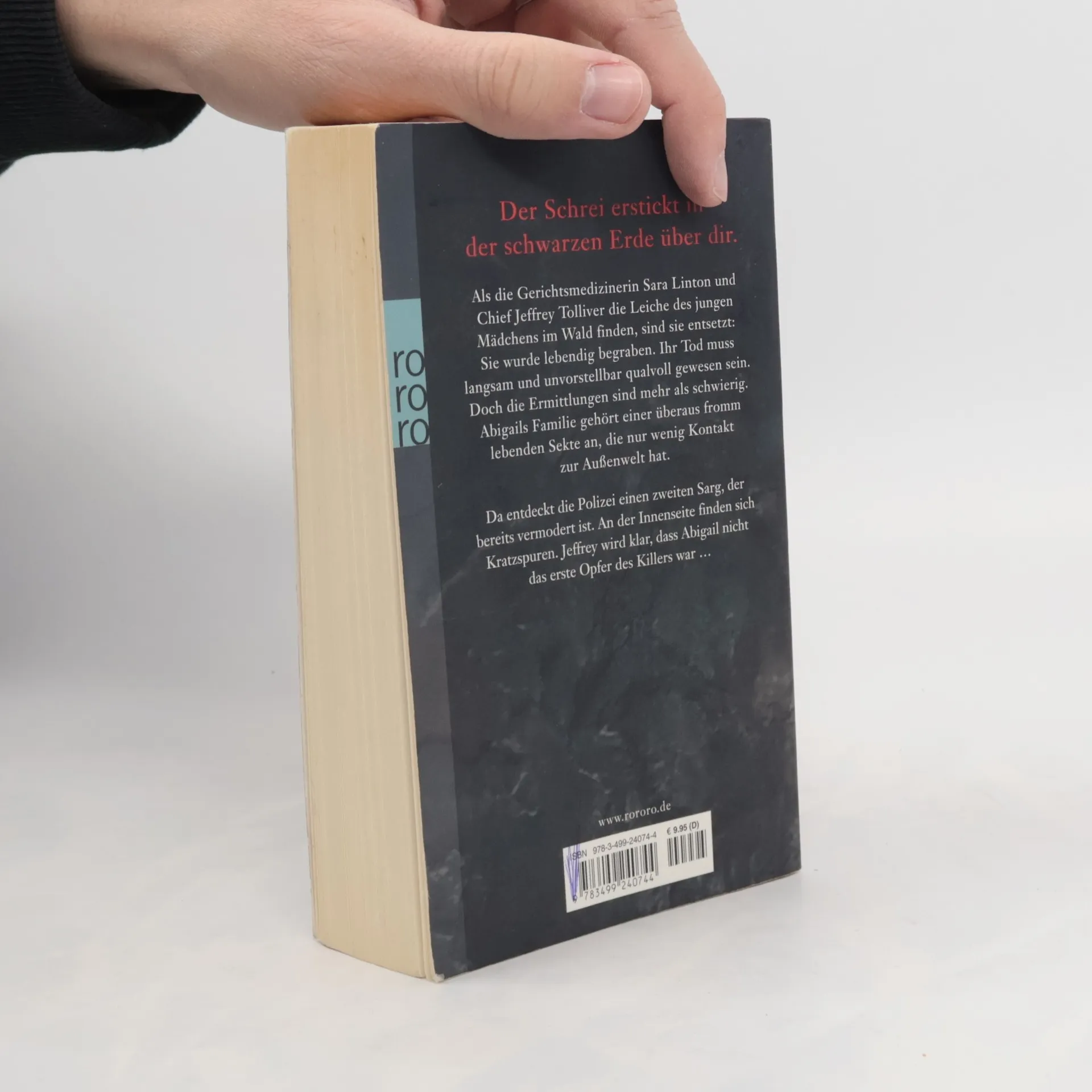 Dein Schrei erstickt in der schwarzen Erde über dir.Als die Gerichtsmedizinerin Sara Linton und Chief Jeffrey Tolliver die Leiche des jungen Mädchens im Wald finden, sind sie entsetzt: Sie wurde lebendig begraben. Ihr Tod muss langsam und unvorstellbar qualvoll gewesen sein. Doch die Ermittlungen sind mehr als schwierig. Abigails Familie gehört einer überaus fromm lebenden Sekte an, die nur wenig Kontakt zur Außenwelt hat.Da entdeckt die Polizei einen zweiten Sarg, der bereits vermodert ist. An der Innenseite finden sich Kratzspuren. Jeffrey wird klar, dass Abigail nicht das erste Opfer des Killers war…