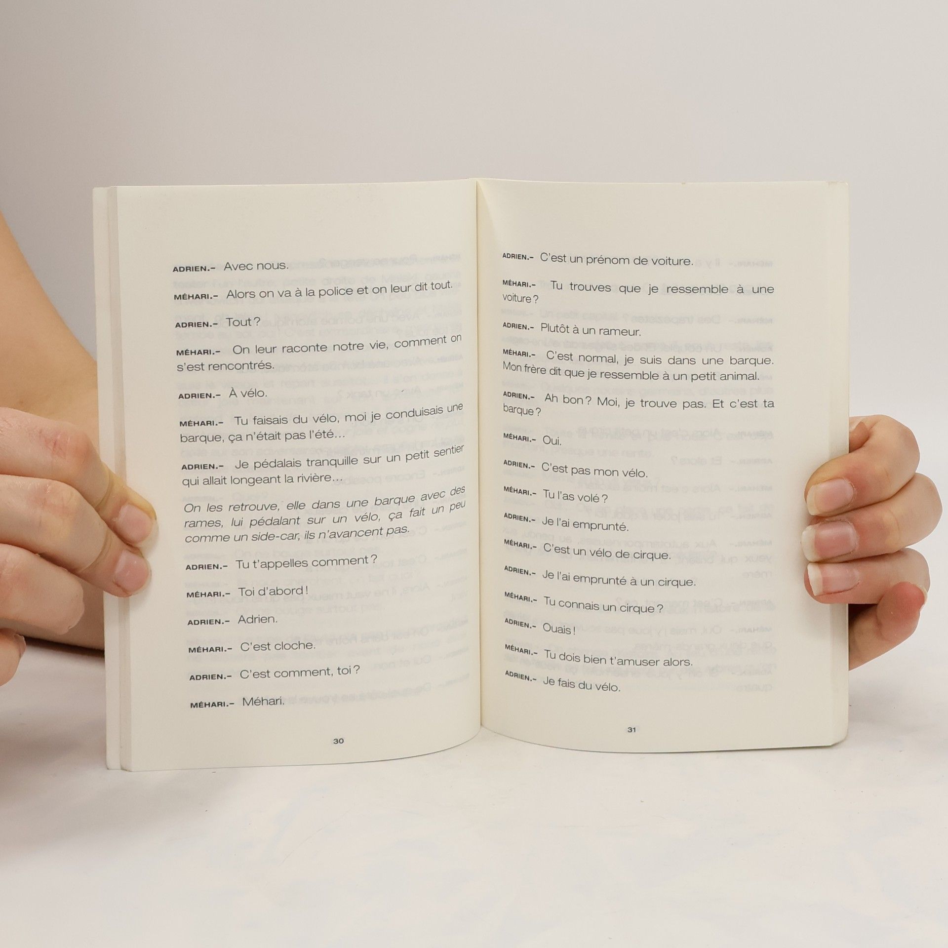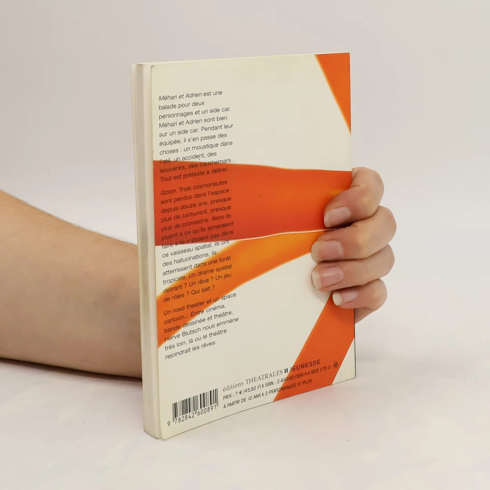 Méhari et Adrien est une balade pour deux personnages et un side-car. Méhari et Adrien sont bien sur un side-car. Pendant leur équipée, il s'en passe des choses : un moustique dans l'œil, un accident, des souvenirs, des cauchemars... Tout est prétexte à délirer. Gzion. Trois cosmonautes sont perdus dans l'espace depuis douze ans, presque plus de carburant, presque plus de provisions. Alors ils jouent à ce qu'ils aimeraient faire s'ils n'étaient pas dans ce vaisseau spatial, ils ont des hallucinations, ils atterrissent dans une forêt tropicale. Un drame spatial délirant ? Un rêve ? Un jeu de rôles ? Qui sait ? Un road theater et un space cartoon... Entre cinéma, bande dessinée et théâtre, Hervé Blutsch nous emmène très loin, là où le théâtre rejoindrait les rêves.