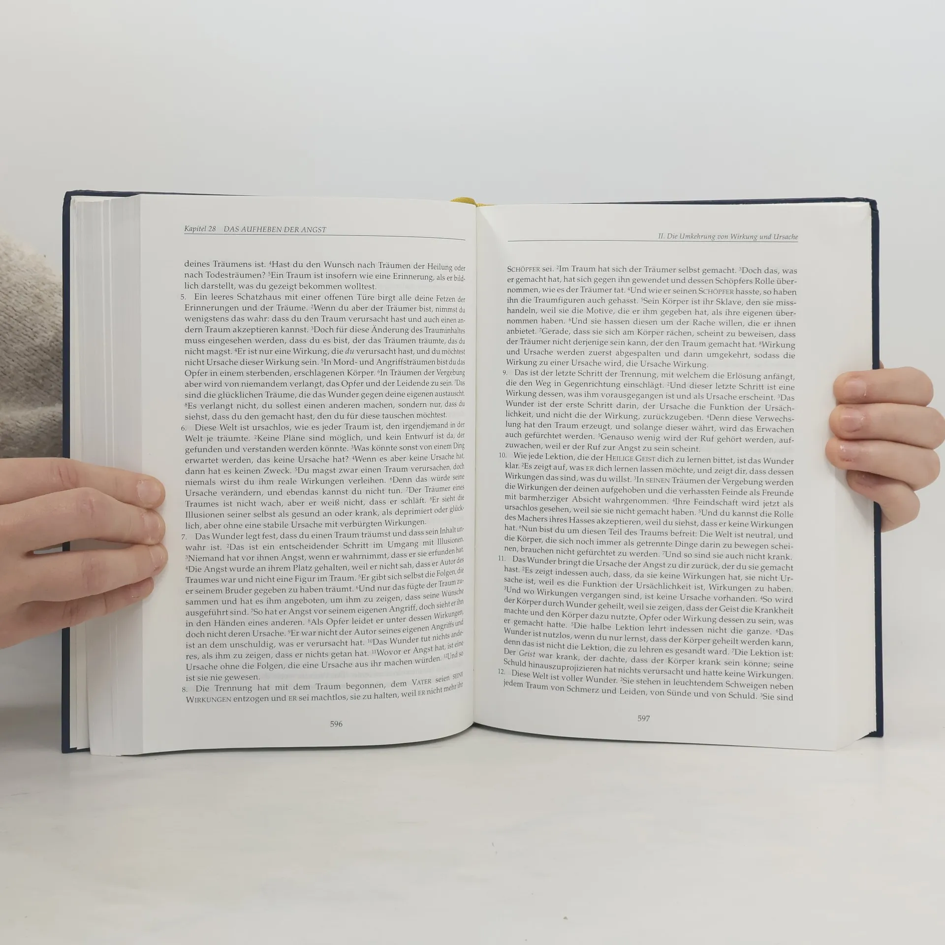 EIN KURS IN WUNDERN ist aufgrund seiner Synthese von zeitlosen geistigen Einsichten und wesentlichen psychologischen Erkenntnissen einzigartig unter den spirituellen Traditionen der Welt. Er zeigt uns einen Weg zu innerem Frieden, zu einem Dasein, das in der Welt, aber nicht von der Welt ist. Der Kurs ist nicht als Grundlage für eine neue Religion, Bewegung oder Vereinigung gedacht. Vielmehr dient er unabhängig von äußeren Autoritäten dem Selbststudium. Er richtet sich an Menschen, die nach einer friedlicheren Betrachtungsweise für ihr Leben und ihren Alltag suchen. Das Werk besteht aus dem Textbuch, dem Übungsbuch und dem Handbuch für Lehrer. Im Textbuch werden die Konzepte dargelegt, auf denen das Denksystem des Kurses gründet. Die darin enthaltenen Gedanken stellen die Grundlage für die 365 Lektionen des Übungsbuches dar, bei denen das Hauptgewicht auf der täglichen Erfahrung durch die Anwendung liegt. Das Handbuch für Lehrer gibt Antworten auf viele Fragen, die sich beim Studium ergeben. Wunder im Sinne des Kurses haben nichts mit unerklärlichen Phänomenen in der Außenwelt zu tun, sondern sind ausschließlich innere Veränderungen, die uns daran erinnern, dass es tief in uns verborgen eine Identität der Liebe gibt, die keinen Angriff, sondern nur Frieden kennt. Weitere Informationen unter www.greuthof.de