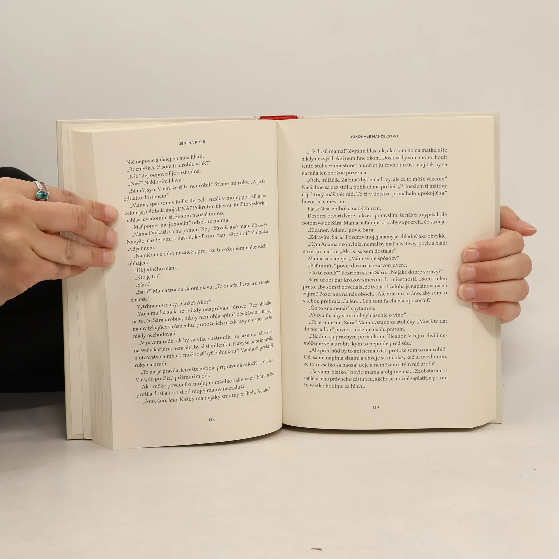 Od autorky bestsellerov podľa New York Times Jenevy Roseovej prichádza do slovenských kníhkupectiev jej prelomový triler „Dokonalé manželstvo“. Tento šokujúci príbeh, ktorý si získal už viac ako dva milióny čitateľov po celom svete, teraz vychádza v kompletne prepracovanom vydaní s exkluzívnou novou kapitolou. Kniha, známa svojím mrazivým a napínavým dejom, oslovila aj producentov, ktorí plánujú jej filmovú adaptáciu. Sára Morganová je úspešná a vplyvná obhajkyňa vo Washingtone D. C. Vo svojich 33 rokoch je už obchodnou partnerkou vo svojej firme a život sa jej vyvíja presne tak, ako si to naplánovala. To sa už nedá povedať o jej manželovi Adamovi, usilovnom spisovateľovi, ktorému sa v kariére príliš nedarí. Vzťah ho začína unavovať, pretože Sára neustále pracuje. Na samote v lese, v druhom dome Adama a Sáry, sa Adam zapletie do vášnivého romániku s Kelly Summersovou. Potom sa jedného rána všetko zmení. Adama zatknú pre podozrenie z Kellinej vraždy. Jeho milenku našli dobodanú na smrť. Sára sa čoskoro ocitne v úlohe obhajkyne vlastného manžela, muža obvineného z vraždy svojej milenky.
