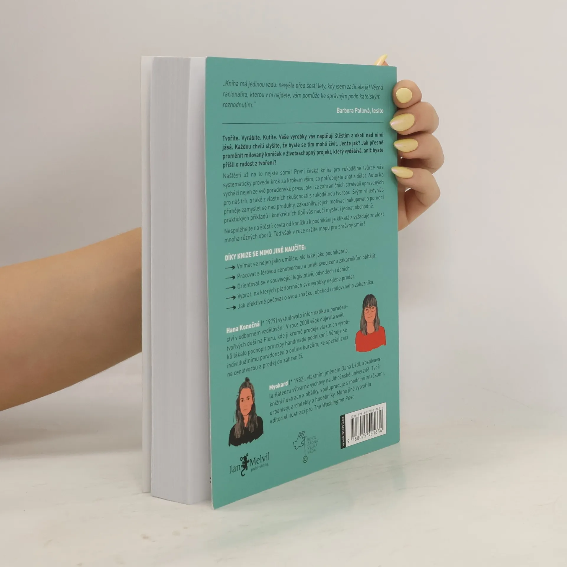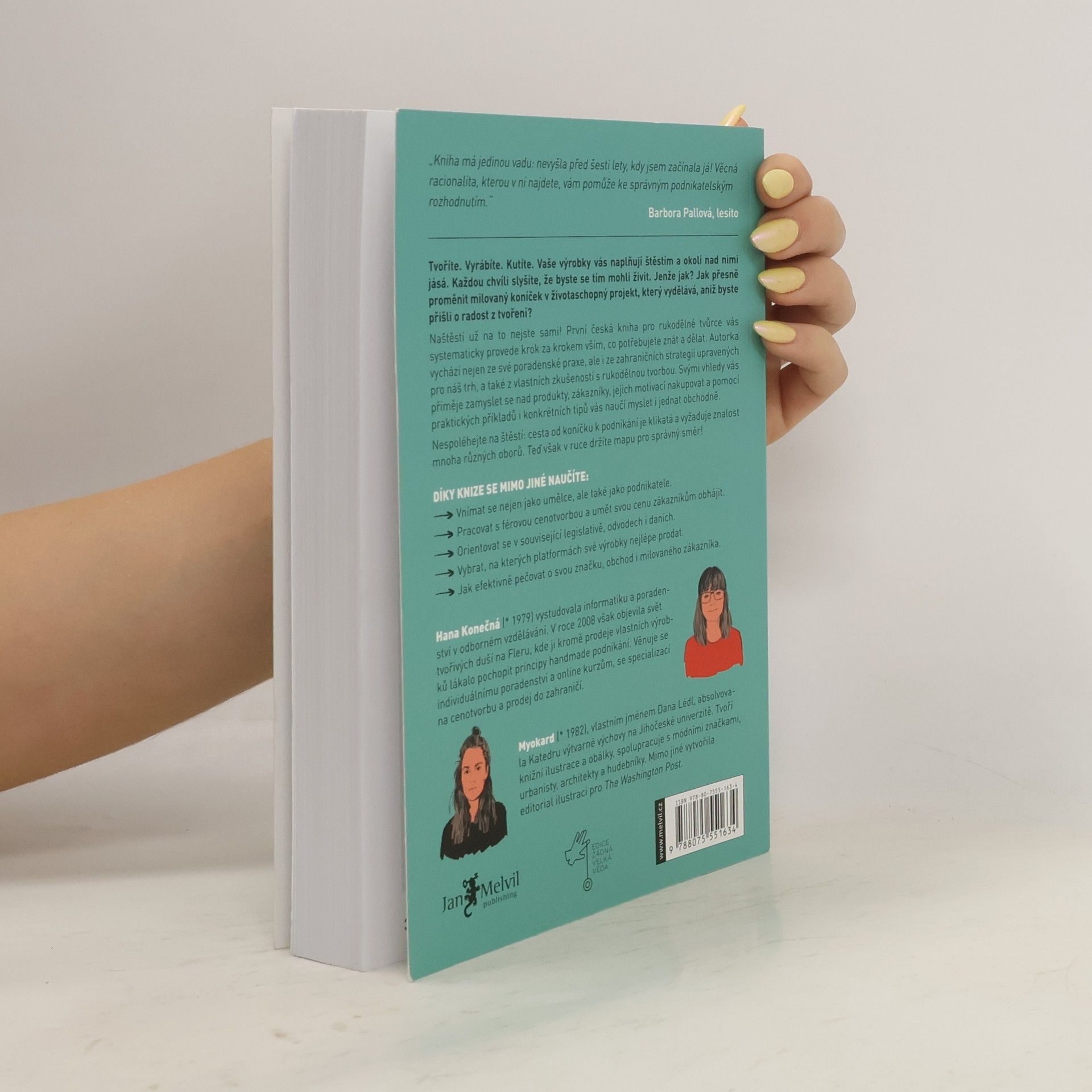 Průvodce na cestě od koníčku k podnikání Tvoříte. Vyrábíte. Kutíte. Každou chvíli slyšíte, že byste se tím mohli živit. Jenže jak na to? Jedny podnikatelské kurzy vám tvrdí, že musíte mít byznys plán. Druhé zase, že máte mít na webu “magnet”. A vám to nedává smysl. Tak se v tom plácáte tak nějak po svém. Pokud jste se v tomto popisu našli, je kniha Handmade byznys přesně pro vás. Provede vás po cestě od rukodělného koníčku k úspěšnému podnikání. Ukáže vám, kde můžete své výrobky prodávat, pomůže nastavit správně ceny, poradí s budováním značky a projde s vámi krajinou marketingu. První česká kniha pro rukodělné tvůrce čerpá ze zkušeností, které autorka sbírala deset let. Inspiruje se v zahraničí, ale současně je zaměřená na české a slovenské handmade podnikatele. Bez zbytečného balastu probírá vše, co potřebujete vědět, abyste mohli své výrobky úspěšně prodávat.