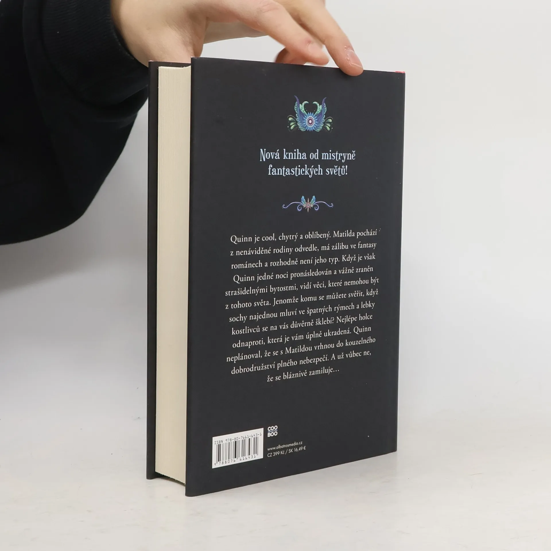 Okouzlující fantasy od autorky bestsellerové série Drahokamy. Quinn je cool a oblíbený. Matilda má nos věčně zabořený ve fantasy románech a rozhodně není jeho typ. Když však Quinna jedné noci napadnou strašidelné bytosti, spatří věci, které nejsou z tohoto světa. Komu se ale svěřit s tím, že se na vás šklebí lebky a sochy najednou mluví? Nejlépe holce odnaproti, která je vám úplně ukradená. Quinn neplánoval, že se s Matildou vrhne do nebezpečného kouzelného dobrodružství. A už vůbec ne, že se bláznivě zamiluje...