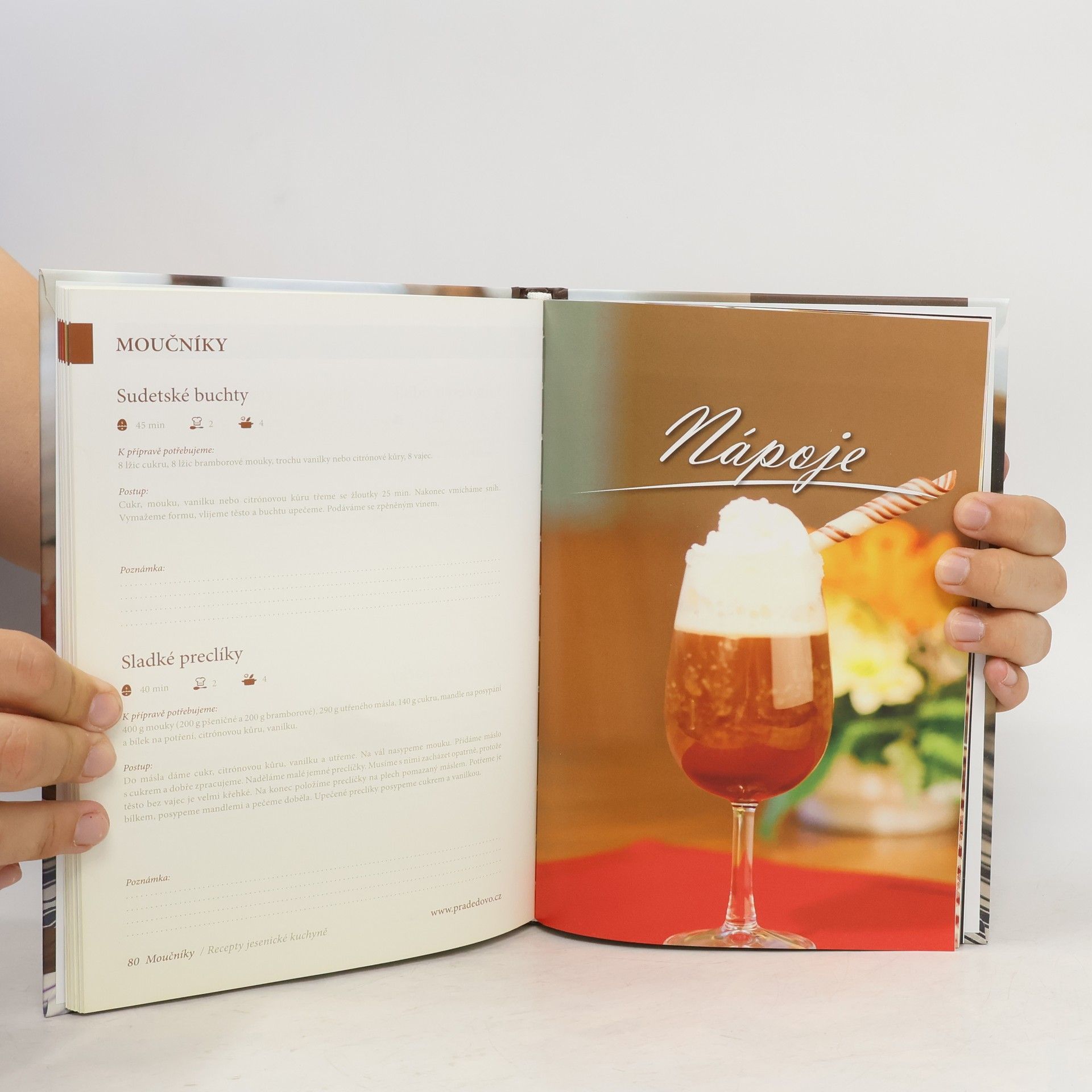 Tradiční jídla Jeseníků bohatě doprovázené fotografiemi v historicky první ucelené publikaci. Předkrmy, polévky, hlavní chody, saláty, přílohy, nápoje i moučníky - to vše na 100 stranách, v tvrdé vazbě. 75 receptů bohatě doprovázených fotografiemi.